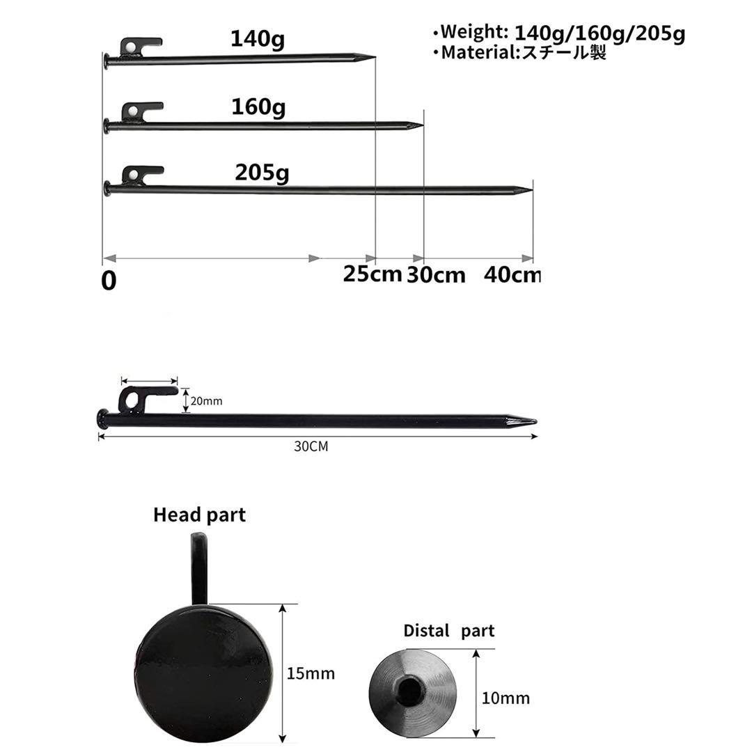 【セット内容】 ペグ25cm8本+ロップ4個+蛍光圏8個+収納 袋1個 サイズ:25cm140g 直径10mm 反射ロップ太さ:3mm 長さ:4m 【優れな素材】 約1100℃まで真っ赤に熱した鋼に約 1 tの強力な圧力をかけて丸形に潰すことで 非常に頑丈なペグに仕上げっています 鍛造ペグは硬い地面にも打ち込むことができ、壊れにくいのが特徴です 直径10mmの丸鋼で作られて、砂利や石が混じ った固い地面でも 深く、強く、しかも曲がらずに打ち込める頑丈さがあるペグです 【錆にくい&抜く簡単】 本製品の表面は黒電着塗装処理してます。水分があるところで使っても錆びにくい ヘッド部分の直径は約15㎜あり、ペグの打ち込みはより簡単になります 下の部分は細めのデザインで、地面により簡単に入れます 【反射ロップ】 安全性の向上のため、パラコードに 反射糸(グレーの部分)を編みこみました 夜間にライトなどで照らすと反射し、わずかな光しかないところでの視認性を高めるため 見やすく安全性が格段に向上しました ペグに反射材入りのロープをつけると、深夜の回収や設置する時の位置確認もかなり便利になります ロープの長さや張り具合を調整できる、 アルミ自在金具8個セットも付いていま す! テント設営がもっと楽になります 【多場所使う】 砂地以外ではほとんどの場所で使用できます レジャー、ファミリーキャンプ、キャンプ、登山など、用途に応じて最適なアイテムです