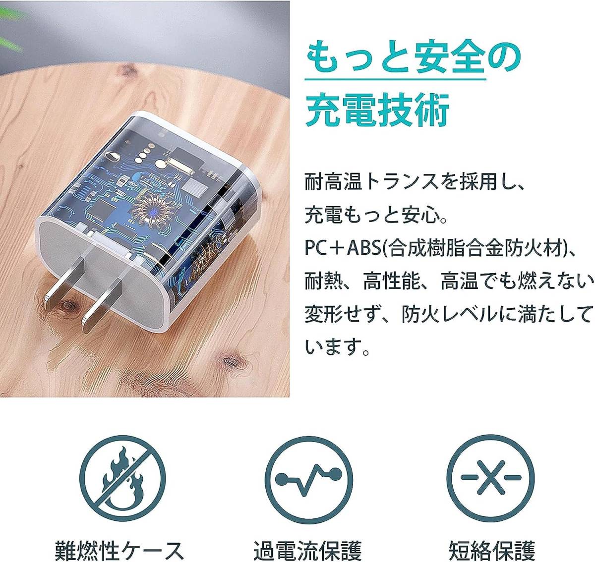 • 【PSE認証済で安心】当社のiPhone充電器はPSE認証を取得し、厳格な品質管理を通じて、更に過熱、過充電、過放電および回路ショート防止など給電保護機能搭載しており、お使いの機器のバッテリーを損傷することはなく安全かつ迅速な充電スピード。