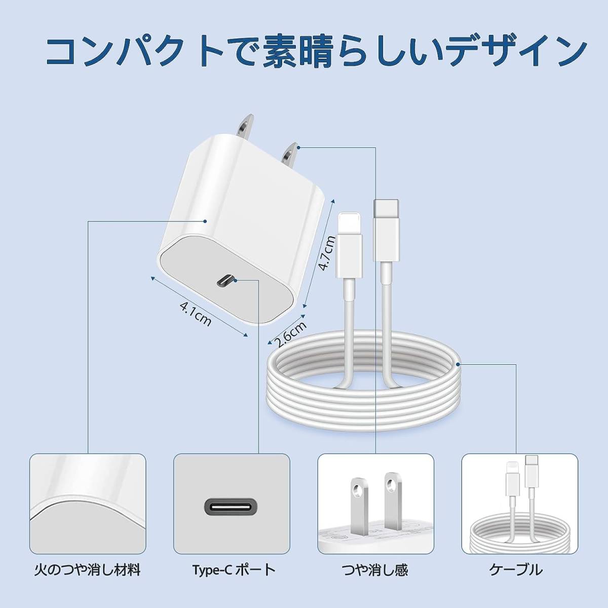 iPhone充電器 20W PD 急速充電 type-c PD充電器 2m USB-C電源アダプタ タイプc 充電器