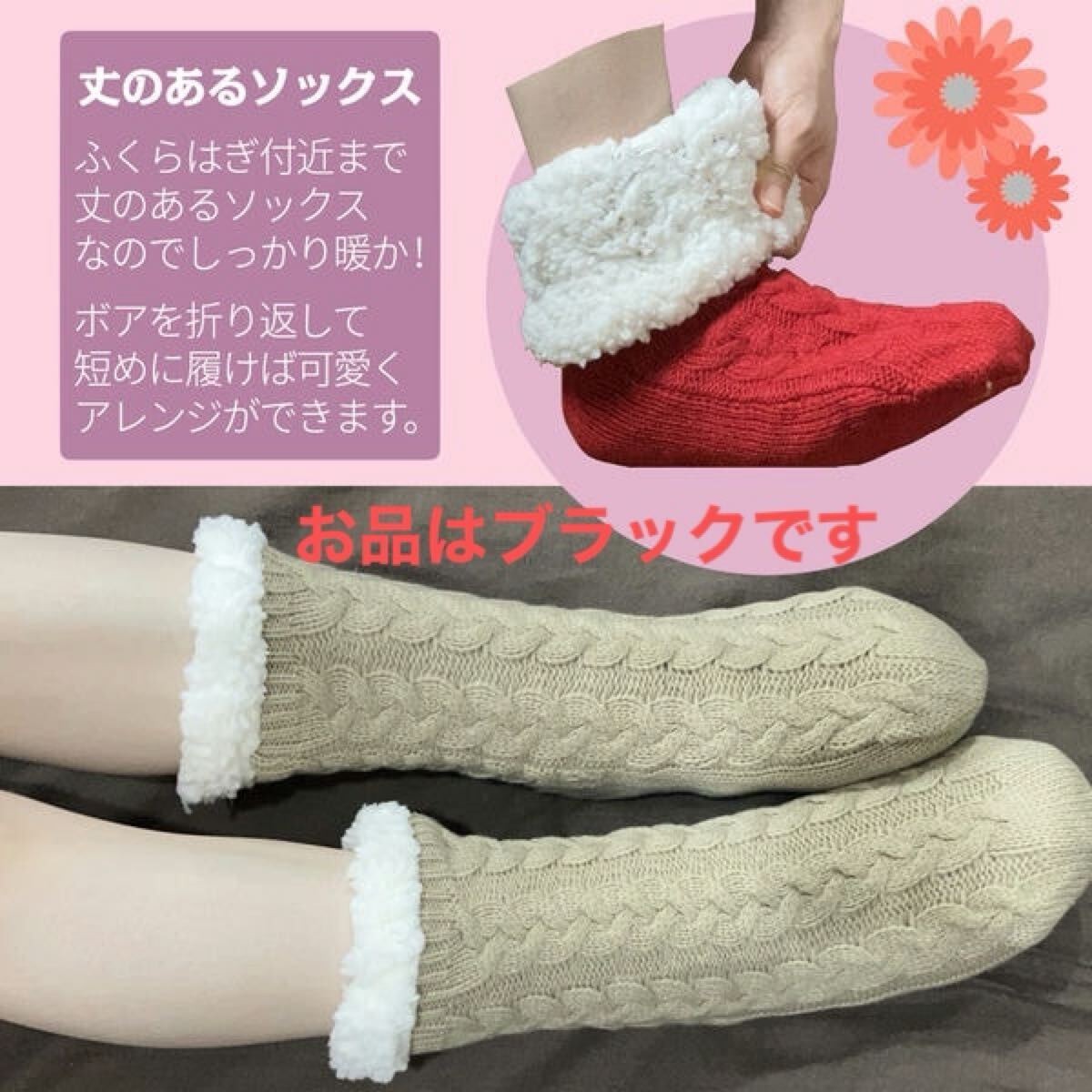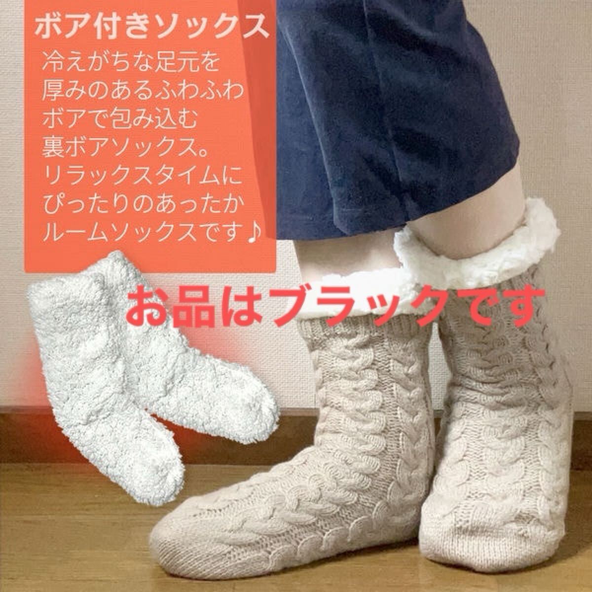 冬支度【極厚 裏ボア ルームソックス★ブラック】裏起毛靴下 裏起毛ソックス ふわふわ あったか 保温 もこもこ 冷え予防 送料無料 新品