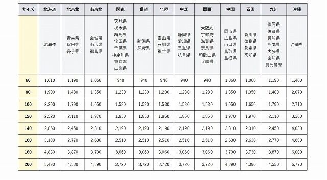 请参考商品网页上的说明,若无说明,一般普通3KG左右的普通件700日元左右,超大件2000日元至1万日元不等。下单前有疑问的请咨询客服。