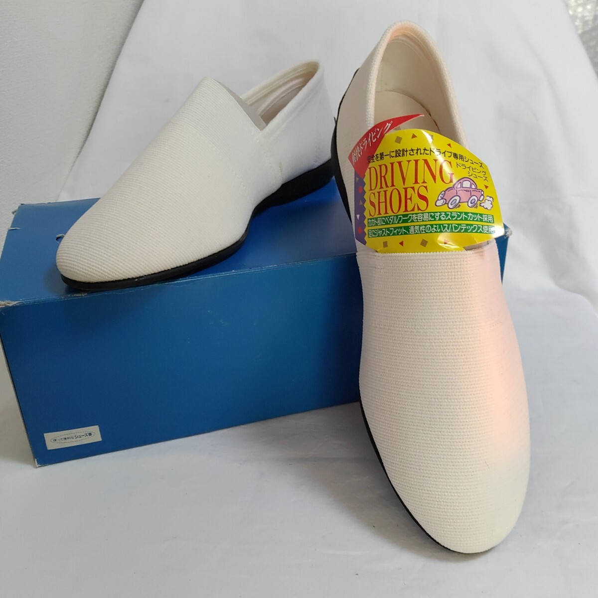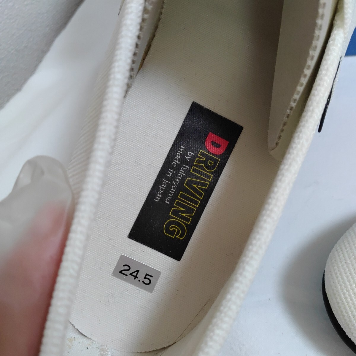 【未使用】ドライビングシューズ ホワイト 24.5㎝ スリッポン 日本製 0221-F5-TA14