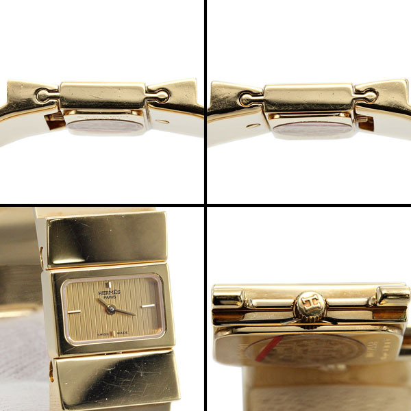 エルメス HERMES ロケエナメル L01.201 ゴールド文字盤 レディース腕時計 GP クォーツ 19.5mm ブランド バングルウォッチ 女性 プレゼント