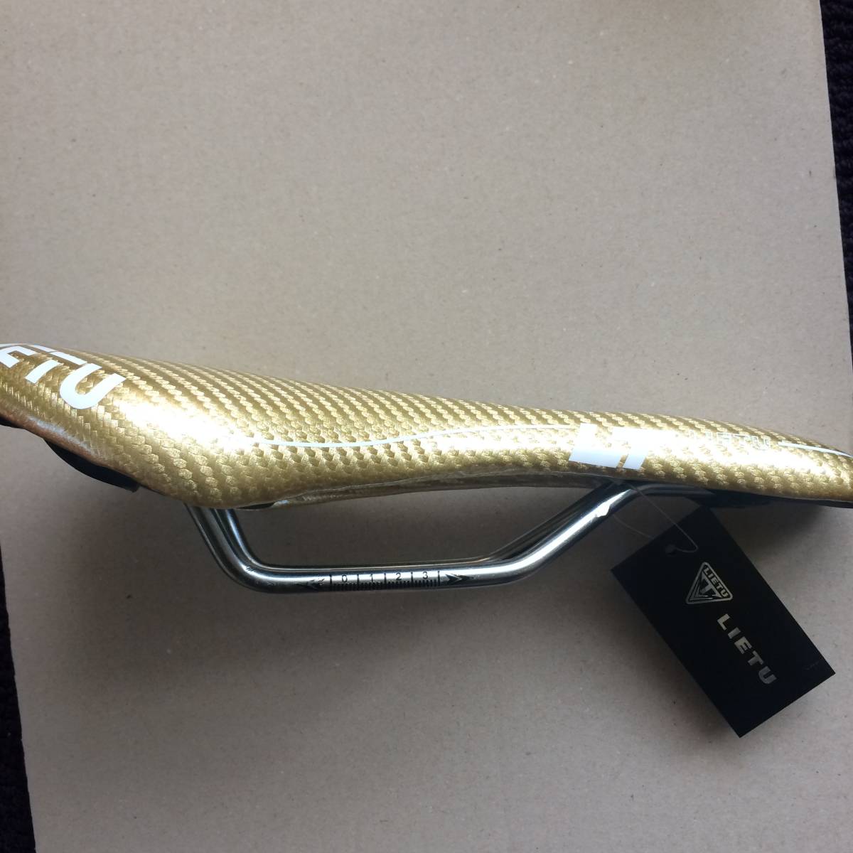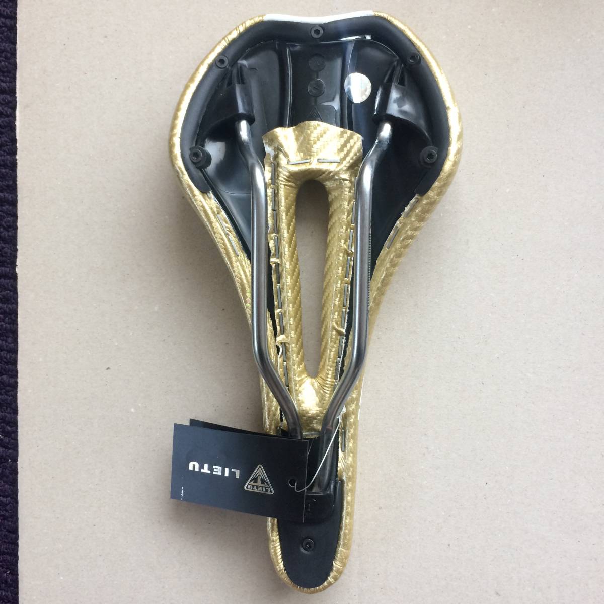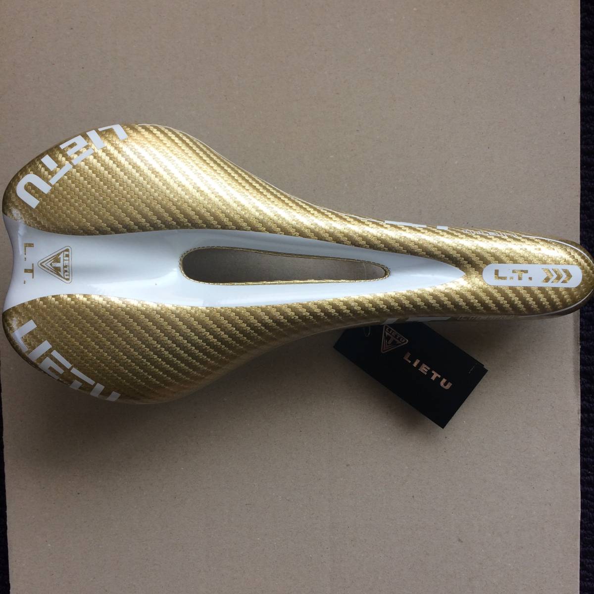 LIETU L.T ロードバイク・クロスバイク用サドル 135-275mm 約280g ホワイト&ゴールド 白金