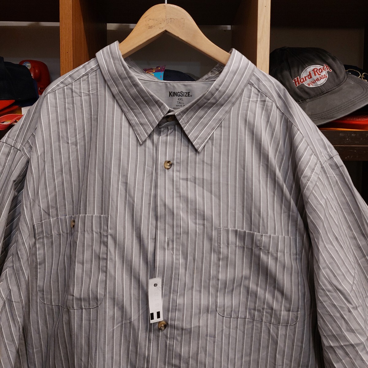 kingsize キングサイズ 4XL TALL 半袖ストライプシャツ 白 グレー ホワイト 大きいサイズ 06G1802