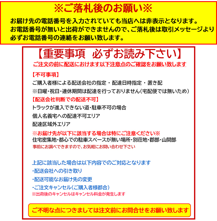 | ◇送料無料 ※北海道・沖縄・各県離島は別途お見積り※ ※北海道・沖縄・各県離島のお客様は当店からの連絡があるまでは絶対にお支払いしないで下さい※ ◇土曜・日曜・祝日の発送・お届けはできませんのでご了承下さい。 ◇時間指定配達不可です。 ◇納品書・領収書は同封しておりません ![]() |