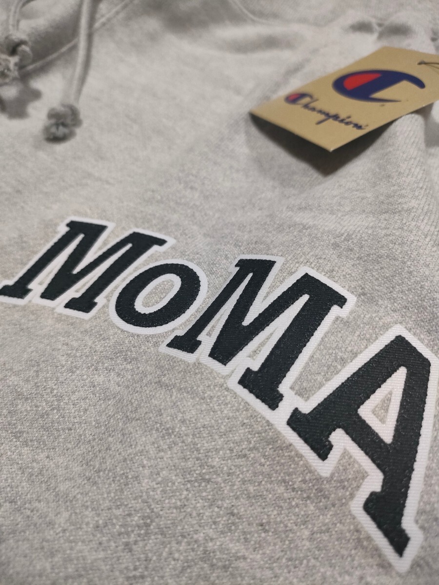 ヘビーウェイト生地で形もとても良く、MOMAのガッシリとしたワッペンが付いた1本です。
