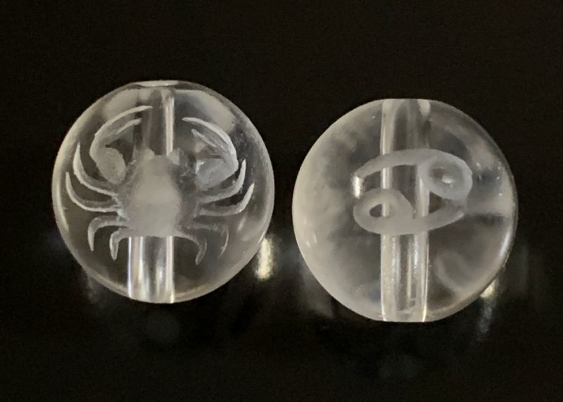 ★片面に12星座のサイン、もう片面に12星座の絵柄が彫られた10mm玉の水晶とその星座守護石を組み合わせて、