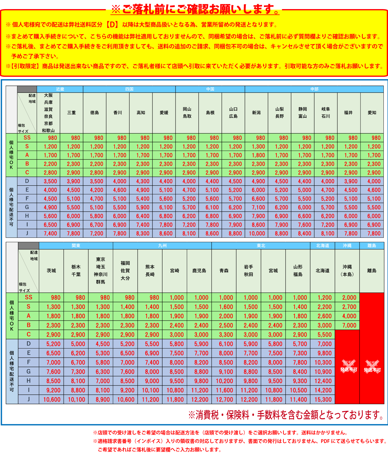 Ⅲ.一旦成功中标,您必须全额支付该拍品(成交价+消费税+银行转账费+日本邮费+代购费)。