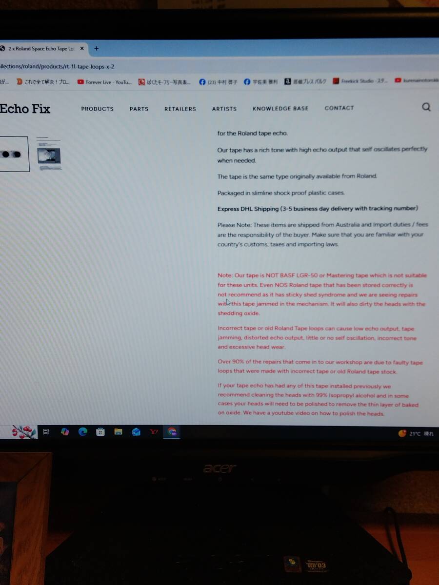 下記の一段目に記載されていますMastering tapeはバックコーテングテープなのです。 文章をすべて翻訳して頂ければわかります。 Note: Our tape is NOT BASF LGR-50 or Mastering tape which is not suitable for these units. Even NOS Roland tape that has been stored correctly is not recommend as it has sticky shed syndrome and we are seeing repairs with this tape jammed in the mechanism. It will also dirty the heads with the shedding oxide. Incorrect tape or old Roland Tape loops can cause low echo output, tape jamming, distorted echo output, little or no self oscillation, incorrect tone and excessive head wear. Over 90% of the repairs that come in to our workshop are due to faulty tape loops that were made with incorrect tape or old Roland tape stock. If your tape echo has had any of this tape installed previously we recommend cleaning the heads with 99% Isopropyl alcohol and in some cases your heads will need to be polished to remove the thin layer of baked on oxide. We have a youtube video on how to polish the heads.   Mastering tapeの裏面はバックコーテングテープなのです。
