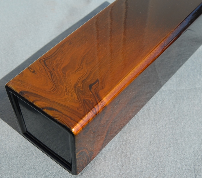 昭和品 漆芸 花器:花瓶 一輪挿し 四角形 墨流し模様 黒に金
