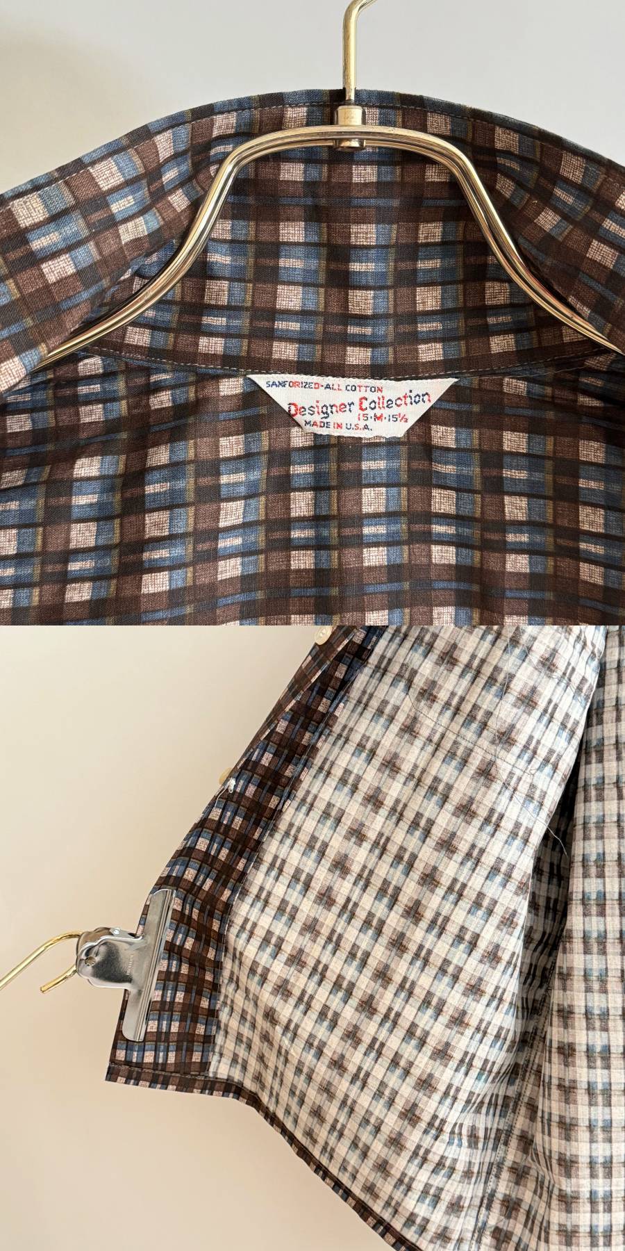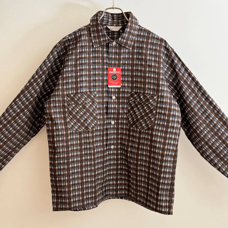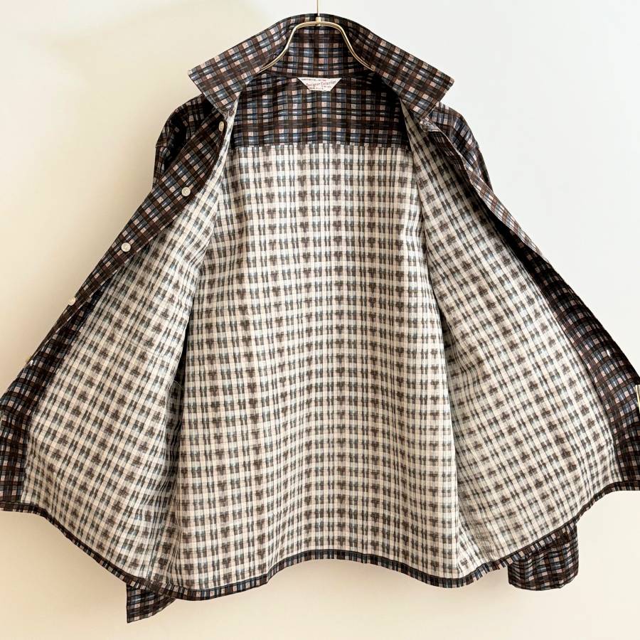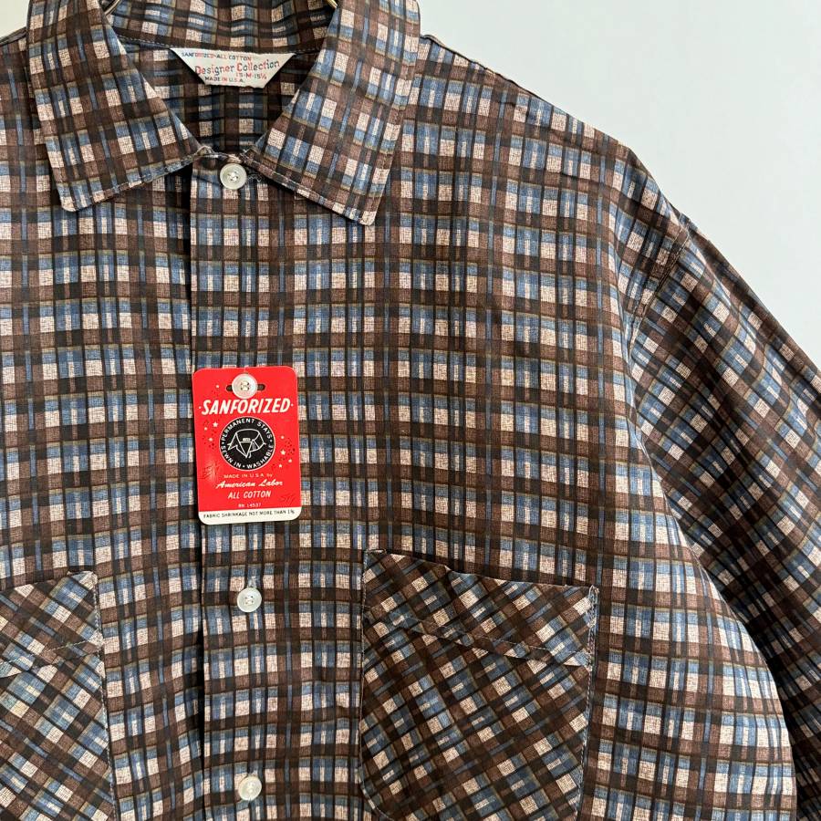 希少《Dead Stock / Print Cotton》50s60s デッド【 Designer Collection ビンテージ コットン プリント チェック シャツ M アメリカ製 】