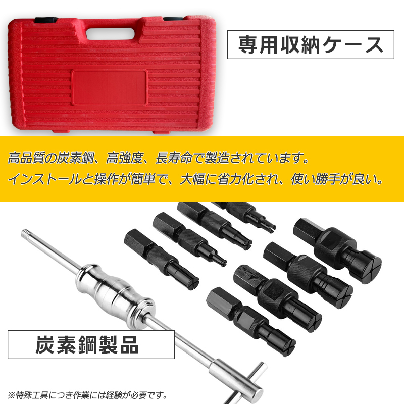 ・スライディングハンマー、アダプター8点(8mm、10mm、12mm、15mm、17mm、20mm、25mm、30mm)専用ケース付