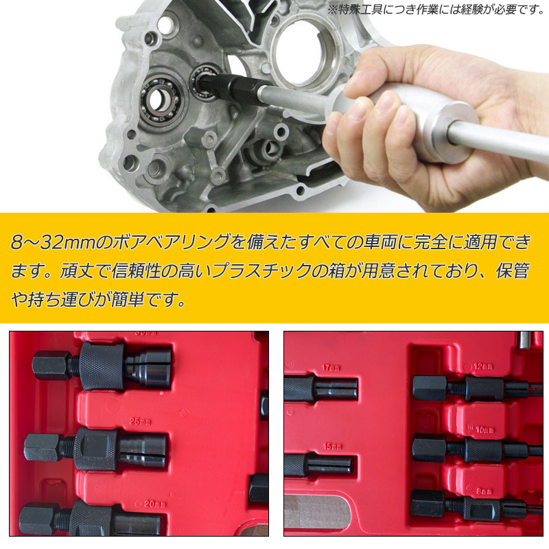 ベアリングプーラー9pcs スライディングハンマー付 8-32mm 8点セット 自転車 オートバイ 脱着工具 車工具