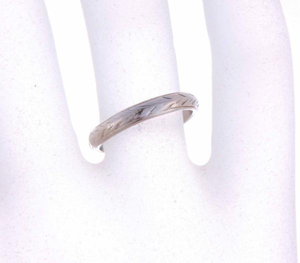 甲丸タイプの指輪に彫り模様がデザインされています。