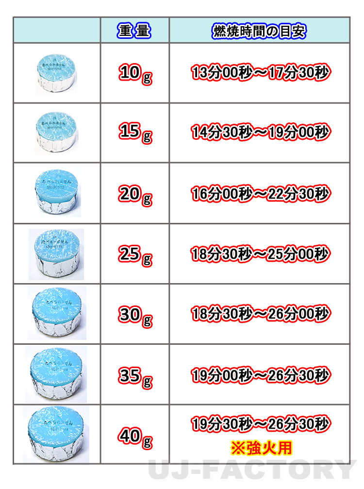 | 【 ここがポイント 】 ★固形燃料の多くのシェアを誇る「ニイタカ」の屋外暖房用燃料! ★焚き火が簡単にできない現代、キャンプやアウトドア、イベントや工事現場等、冬場の屋外で暖房がほしい時の優れもの♪ 【 ご使用に関して 】 ①周囲に引火物のない平らな部分を設置場所に決めます。 ②缶のふたをはずし、ロングライター等の先の長い着火具で火を点けます。 ③消火する場合は、フタを裏向けて軽くかぶせ消火します。 ④缶は熱くなっていますので、よく冷えた状態を確認してから、しっかりとフタをします。