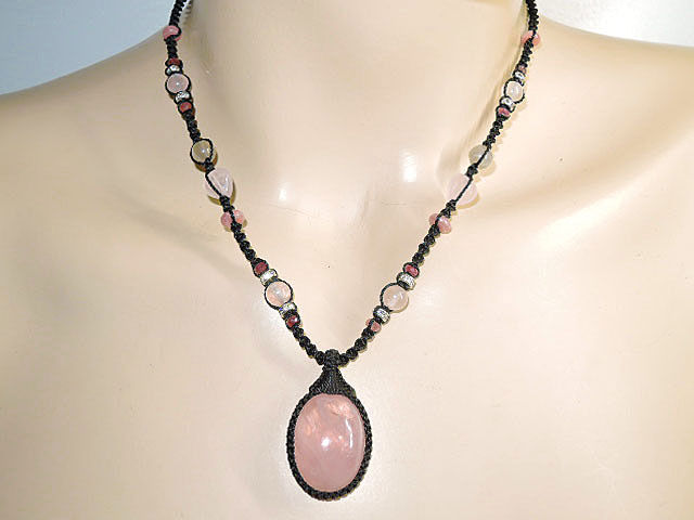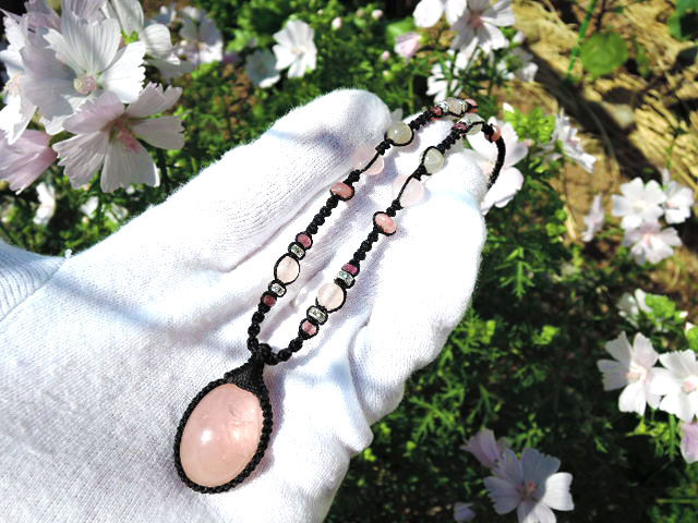★ラブリーなモルガナイト★天然石ネックレス★ハンドメイドマクラメ編み★宝石べリル★ビーズジュエリーペンダント★ kamesan