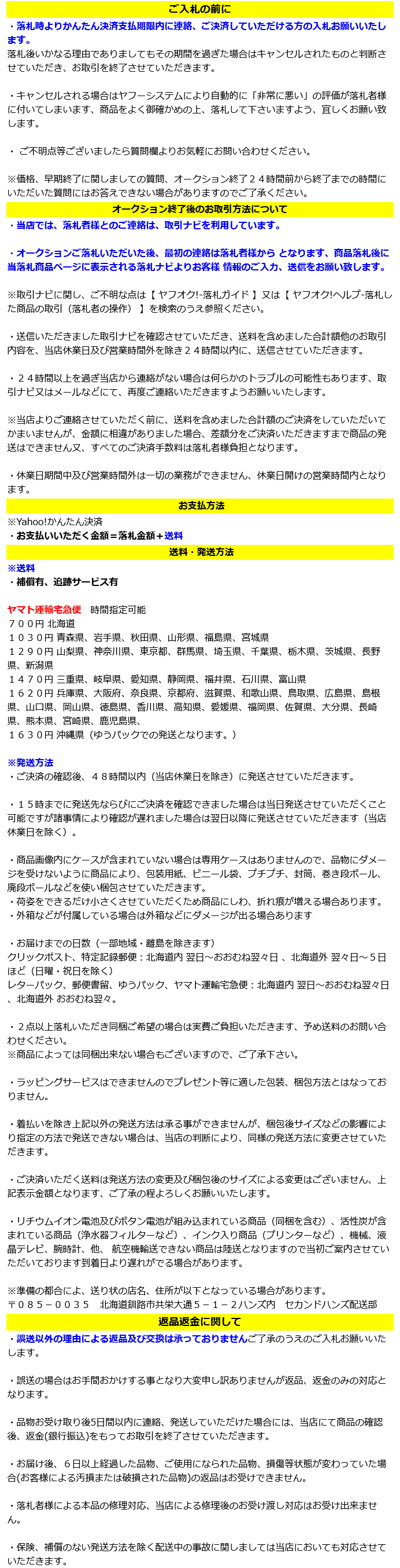 Ⅲ.一旦成功中标,您必须全额支付该拍品(成交价+消费税+银行转账费+日本邮费+代购费)。