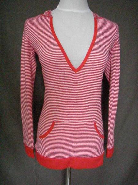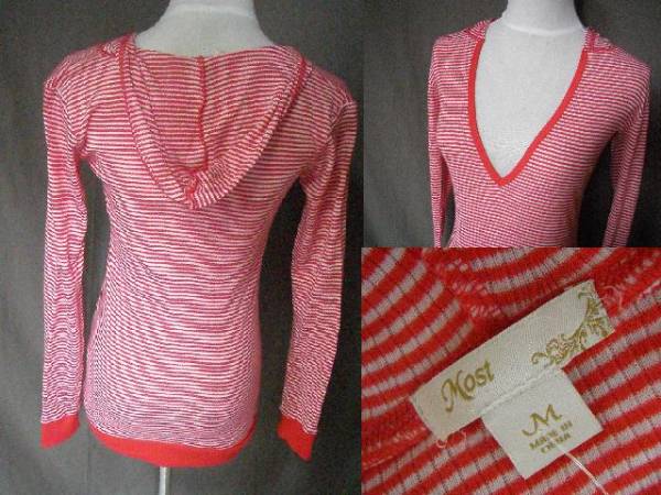 即決 Levi'傘下Most フード付Vネックロング薄地ニットUS M RED