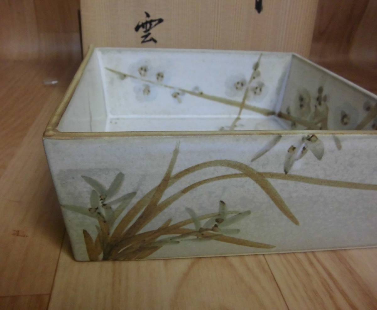 未使用保管 雲楽造 四君子 鉢 角型 陶器 共箱