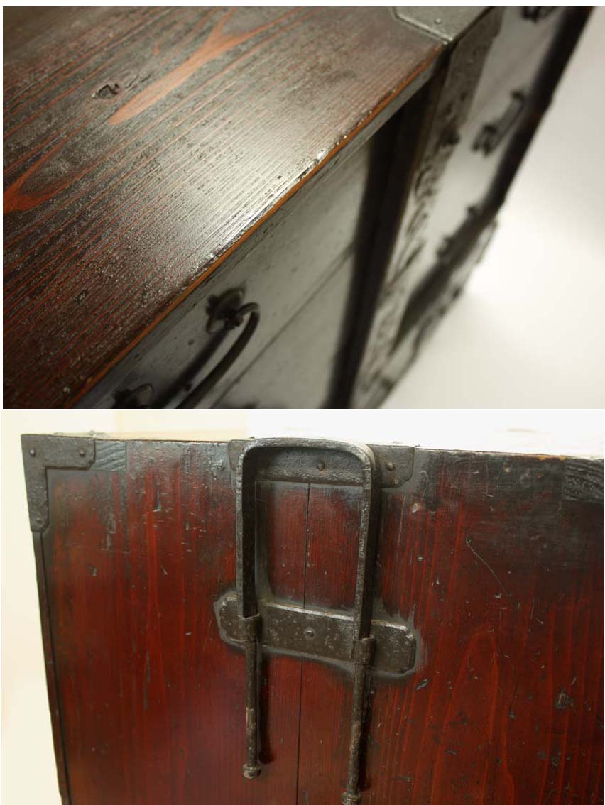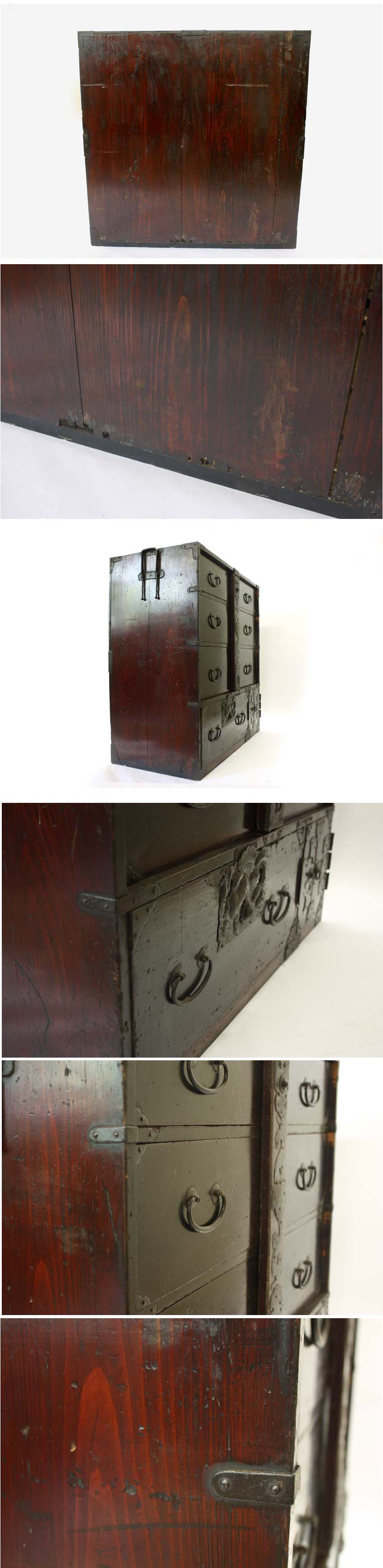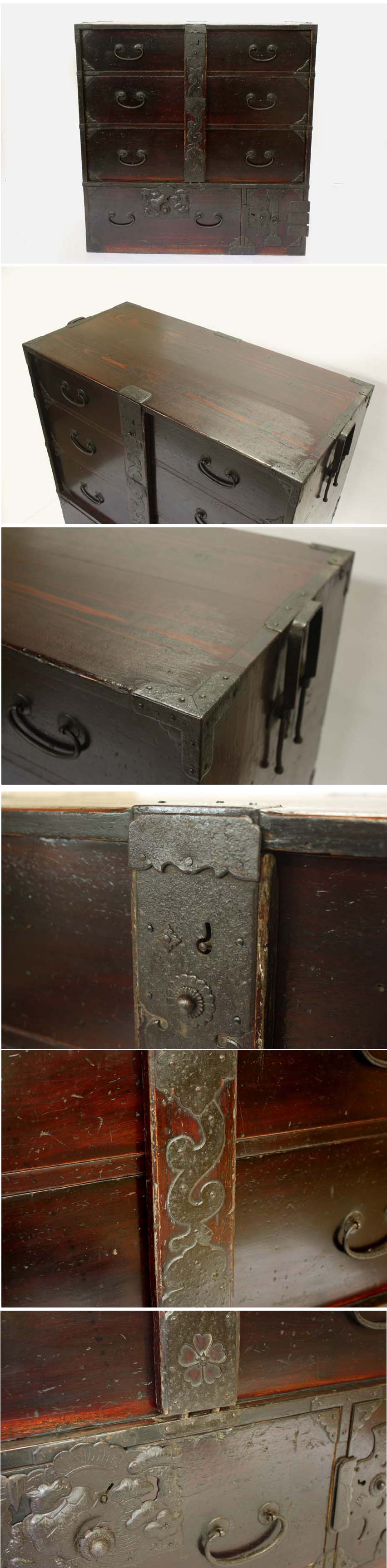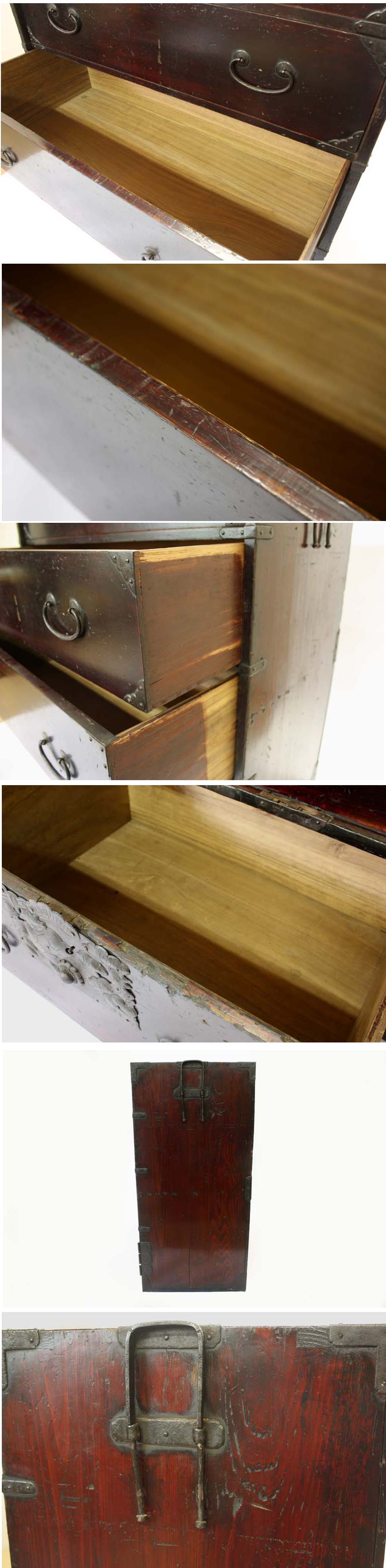 *サイズ・・・ 高さ:900 横幅:880 奥行:430 ㎜ 引出し内①・・深さ:140 横幅:820 奥行:370 引出し内②・・深さ:170 横幅:820 奥行:370 引出し内③・・深さ:200 横幅:820 奥行:370 引出し内④・・深さ:230 横幅:570 奥行:370 ㎜ 重量(約)・・30 ㎏ ・時代庄内棒箪笥 のです。 経年感は見られますが、古民芸の味わいが美しい帳場箪笥です。鍵はありません。 詳細は掲載写真をご参考下さい。 ご理解いただける方のみご入札をお願いいたします。 ※寸法に若干の誤差が生じる場合もございます。目安としてご参考下さい。 ※画像につきましては、PC環境により実物と色合い等、若干異なる場合がございますので、予めご了承ください。 |