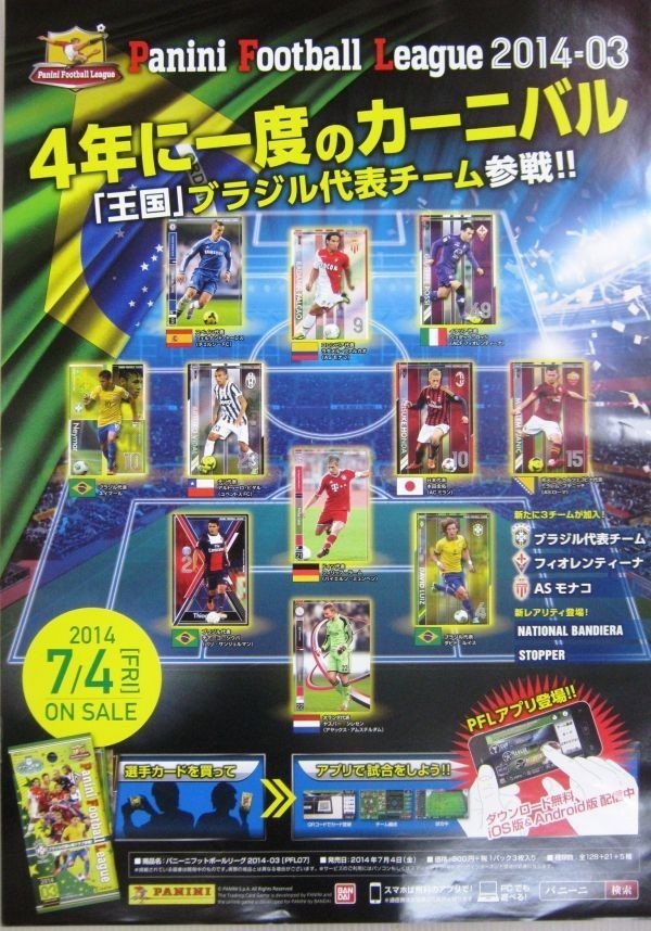 非売品 パニーニ フットボール リーグ トレーディングカード 2014-03 PFL07 販売告知ポスター サイズ B2 (51.5 cm × 72.8 cm) #288 *サイズ約 72.8×51.5(cm)[B2 (51.5 cm × 72.8 cm) ] 未使用品です。状態は画像をご覧ください。なお昔の品の為、キズ、折れ、汚れなど経年変化の場合がございます。また画像に見えない瑕疵の場合が御座いますので予めご了承ください。
