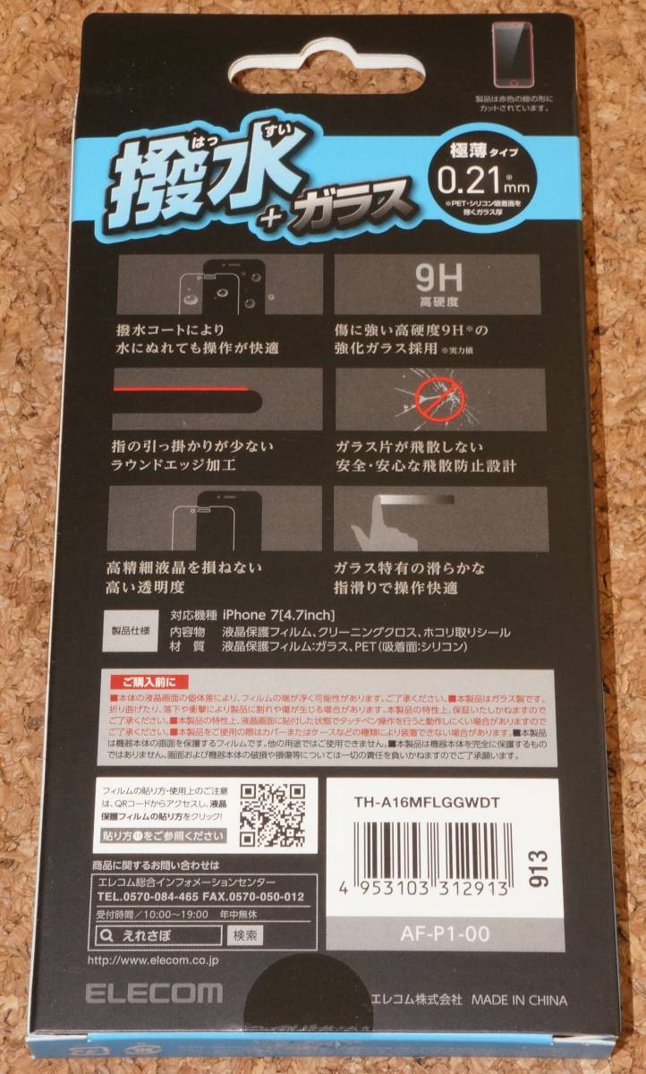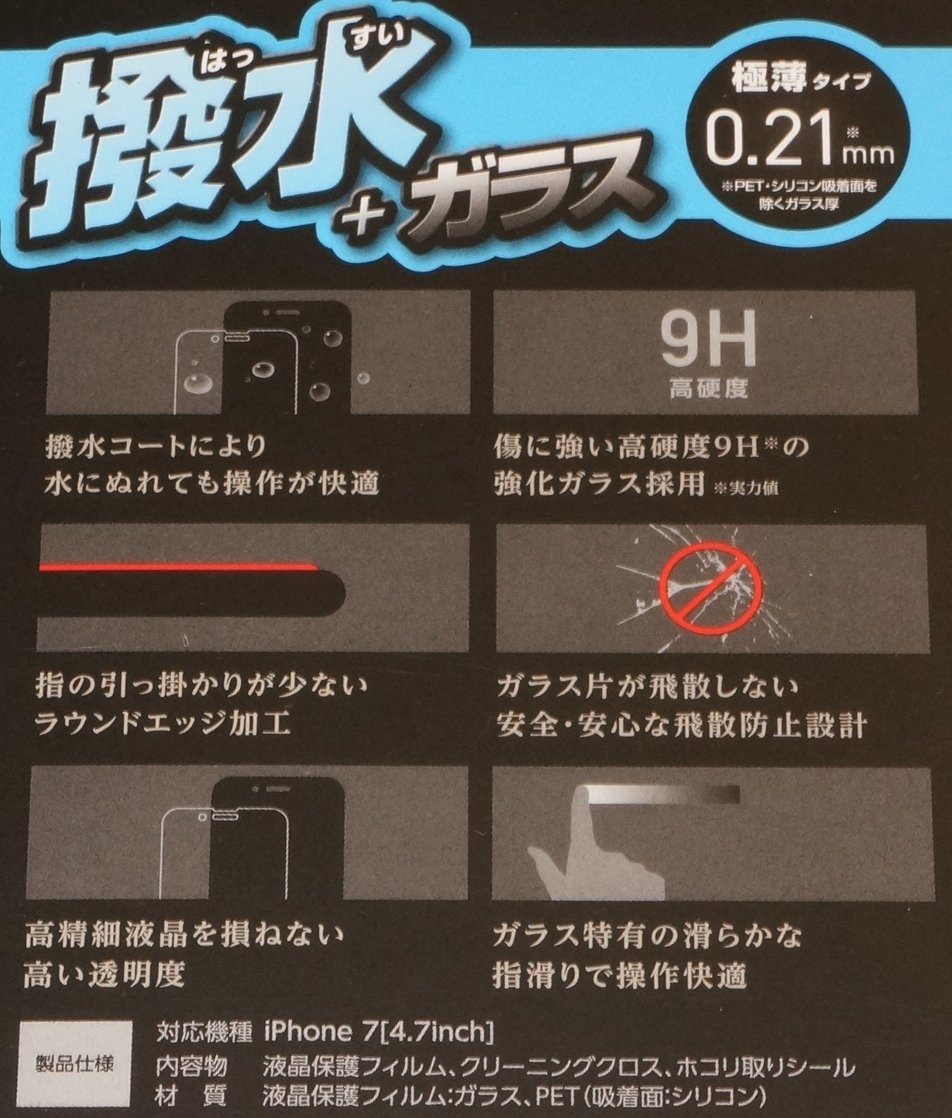 ELECOM iPhone7 液晶保護 撥水 ガラス Dragontrail X 0.21mm 9H 新品・未開封です。