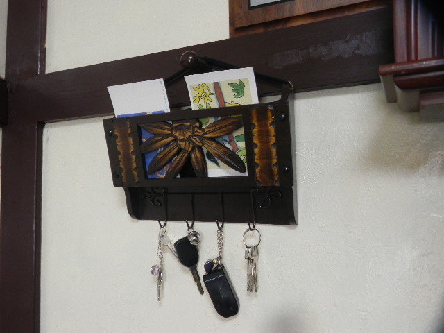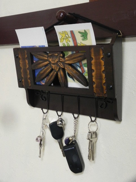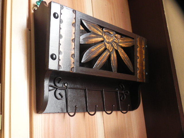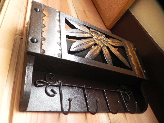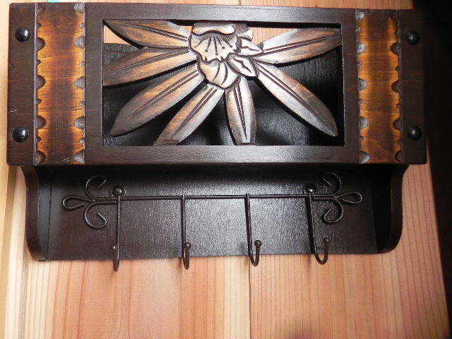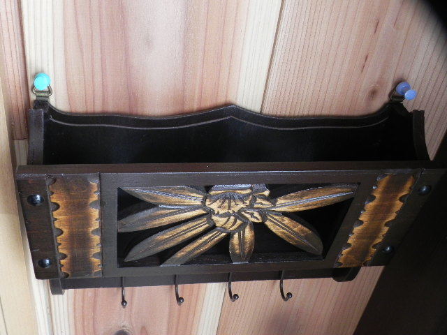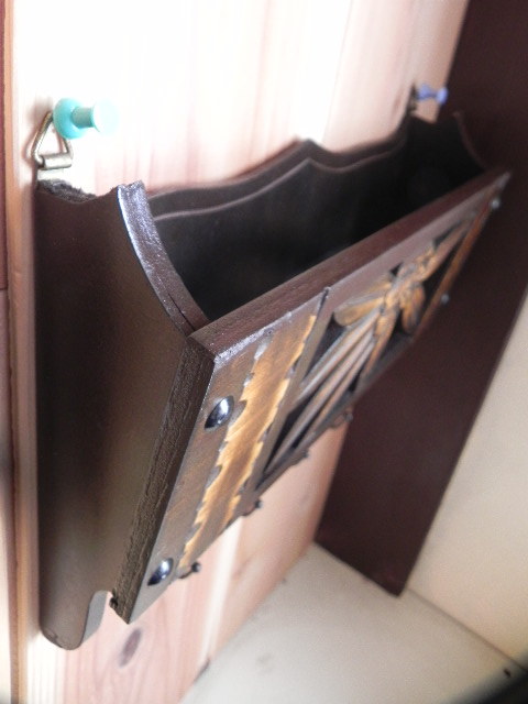 昭和レトロ 状差し 花柄はがき入れ アイアンフック付き