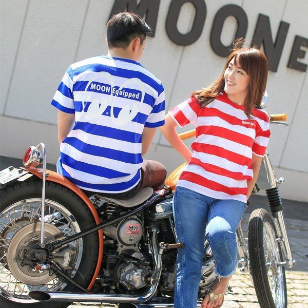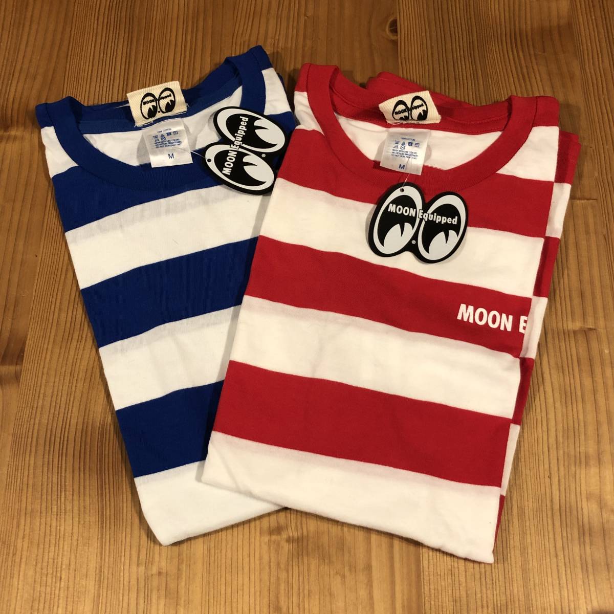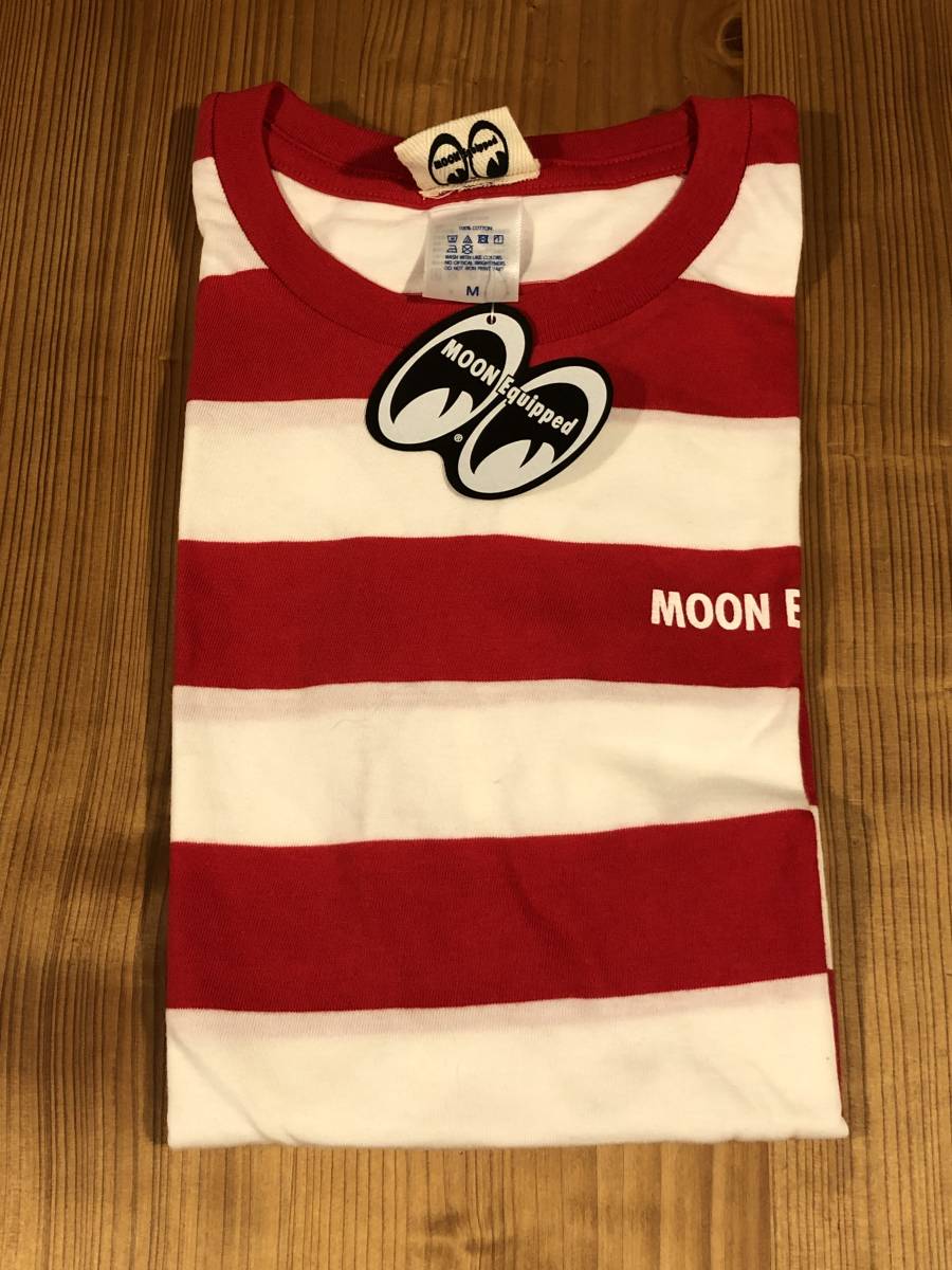 廃版 送料込み Sサイズ MOONEYES Tシャツ ムーンアイズ 赤 レッド × ホワイト ボーダー moon equipped アイシェイプ eyeshape