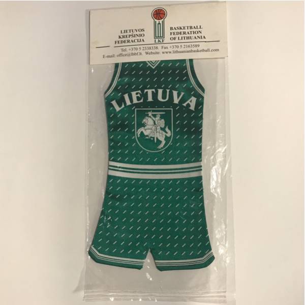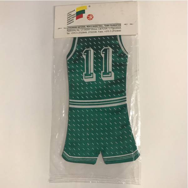 未開封。リトアニア代表のバスケユニフォーム型飾り物です。