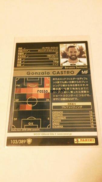 ☆WCCF2016-2017☆16-17☆103☆黒☆ゴンサロ・カストロ☆ボルシア・ドルトムント☆Gonzalo Castro☆Borussia Dortmund☆
