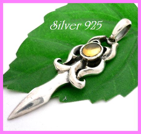 シルバー925銀の天然石シトリン ソード剣ペンダント/ALL50%OFF