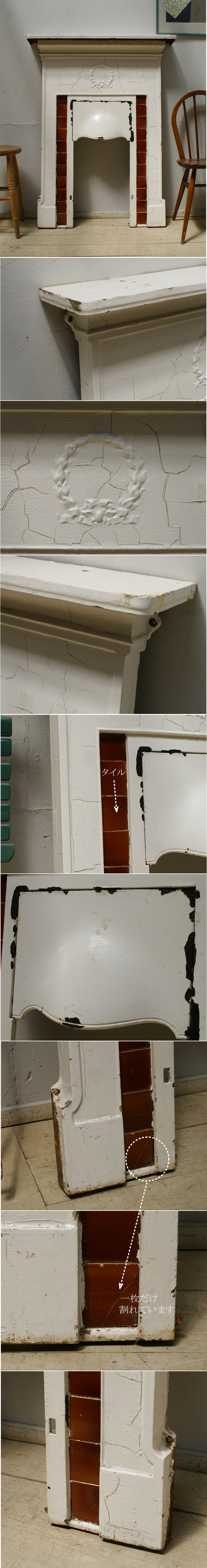 イギリスの蚤の市で見つけてきたアンティークのファイヤープレイスです。大き目のサイズです。使い込まれた風合いがとても素敵です。立てかけてお部屋のインテリアにしたり お花屋さんや雑貨屋さん等 ショップディスプレイの アクセントにもオススメです。タイルが一枚割れていますが、それ以外、全体的に大きなダメージ無くコンディション良好です。