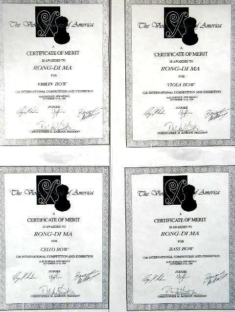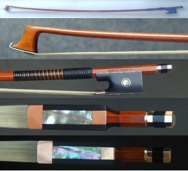 Vn楽弓★RONG-DI MA作★D.PECCATTE★1840~1842年モデル 出品価格は消費税込み表示です。 お求めの際には入札前に是非試奏されます事をお薦め致します。 RONG-DI MAは2013年、北京で開催された第二回国際弦楽器製作コンクール (The second China International Violin Making and Bow Making Competition) に於いてバイオリン弓とビオラ弓の両方で金賞を受賞され、 thestrad.comの記事にも掲載されたことがあります。 今回出品させて頂くバイオリン楽弓は 1840~1842年間に製作されたPeccatte(ドミニカ)の楽弓の作を参考にしたモデルです。 音色にPECCATTEらしいキラっとした明るさを持ち合わせた楽弓です。 同時に求めることが困難な腰の強さと音色の理想を極めるだけ極め、 やっと生まれ出たといった感のある弓で素晴らしいです。 やろうとする動作にしっかり応えてくれる反応性も良し、 ゆっくりしたスピカートから自分の限界点までの 高速のスピカートが均一に繋げ操作性も大変良い弓です。 ♪特徴 フランスより入手した精選古木フェルナンブーコ材 20年以上寝かした音色が良く密度のある材、カットは最良と言える作品です。 重量: 61.5g フィッティングは14K(金) 、黒檀フロッグ 巻線は、白ナガス鯨、ナガス鯨の2種の本物の髭を交互に巻いています。 噂には聞いていましたが本物の鯨髭のグリップ感は断突にも良いですね。 試した限りでは、本物の鯨髭巻線、鼈甲巻線、鯨髭モドキの順に グリップ感が良かったです。 パリジャンアイ: 二重のアイ、 外リングは8.5mm径の14K 金、 内側は5.5mm径の真珠貝 ネジ自体もRONG-DI MAの手作りで詳細迄当時の形状を再現、内部の材質も当時と同じです。 刻印は棹上に刻まれています。 【御参考】 ♪製作者のRONG-DI MAは現在の中国の弓製作者の第一人者で 北京中央音楽院の林教授、カナダの音楽大学教授、 上海クァルテットの全員、等々のプロのバイオリニスト(ソリスト)達にも 大変人気のある弓製作者です。 ♪2002年のチャイコフスキーコンクールVn演奏部門第二位の方も RONG-DI MAの弓で入賞していますし メニューヒン国際コンクールジュニア部門優勝者においても RONG-DI MAの弓を使って優勝を成し遂げた方がいます。 ♪13才でパガニーニのカプリース Op.1 の24曲全曲を完璧に弾きこなし CD製作した神童Yang Tian-Waもヨーゼフ・ガルネリ(実物)と RONG-DI MAの弓でCD録音しています。 ♪その後、アイザック・スターンに才能を見出されたJIAN WANG(王健)、 ニューヨークのジュリアード音楽院教授のチョーリャン・リン(Vn) にも提供されました。 【提供履歴】 過去にはPeccatte以外でも Tourte、Voirin、Persoit、Lupo、Pajeot 、V.FETIQUE、 N.Simon、Peccatte、 Tubbs、MALINE、Sartory、Lamy、LAFLEUR 等のモデルをお譲りしており、 皆様に気に入って頂いております。 現役のプロの方にもこの弓の性能を確認して頂き、納品させて頂いております。 RONG-DI MAの作品は楽弓に対する熱心な研究がにじみ出るかのように その製作誠意が伝わってきます。棹はおろか、ネジ、フィッティングまで 全てRONG-DI MAが製作していて出来る限り当時の再現を試みています。 勿論、製作のための道具まで彼自身で手作りされています。 尚、RONG-DI MAは1996年にもアメリカで定評のあります VSAコンクールにバイオリン弓、ビオラ弓、チェロ弓、コントラバス弓の 4本を出品し全ての作品で賞を取っています。 製作者RONG-DI MA希望の提供価格は希望落札価格に設定させて頂きました。 お求めの前に是非試奏されます事をお薦め致します。当方は東京都23区内です。
