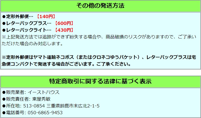| ■□□ お取引きについて □□■ ●出張などで発送やメールのやり取りが出来ない場合など、重要なお知らせは「自己紹介欄」に更新しますので、落札前に必ずご確認ください。 ●基本的に同梱発送は可能ですが、商品の組み合わせによってはご希望に添えない場合がございます。ご了承ください。 |