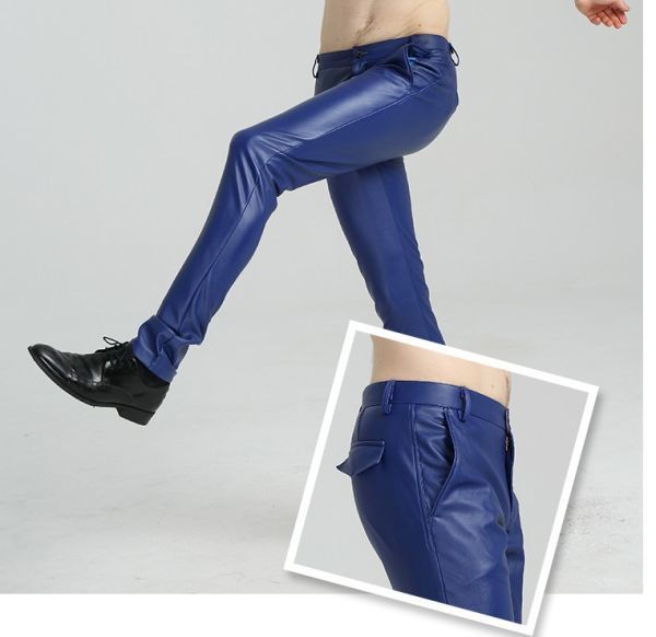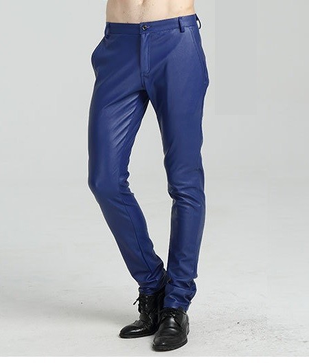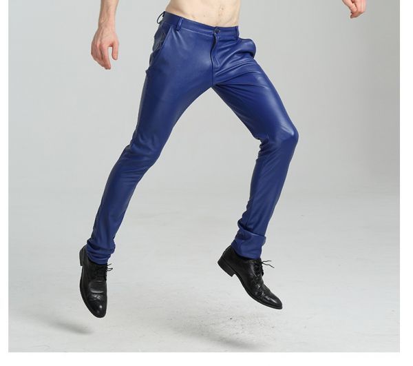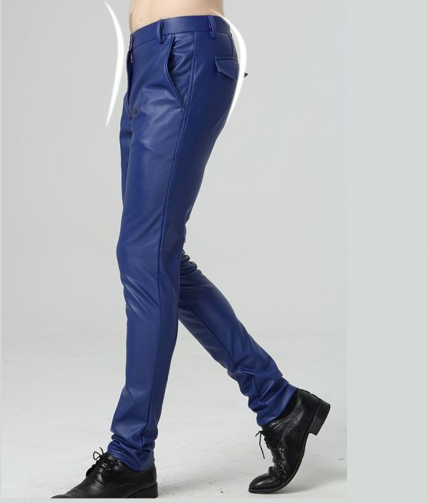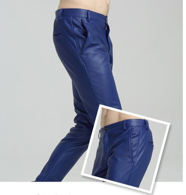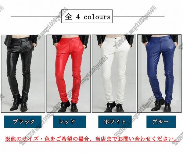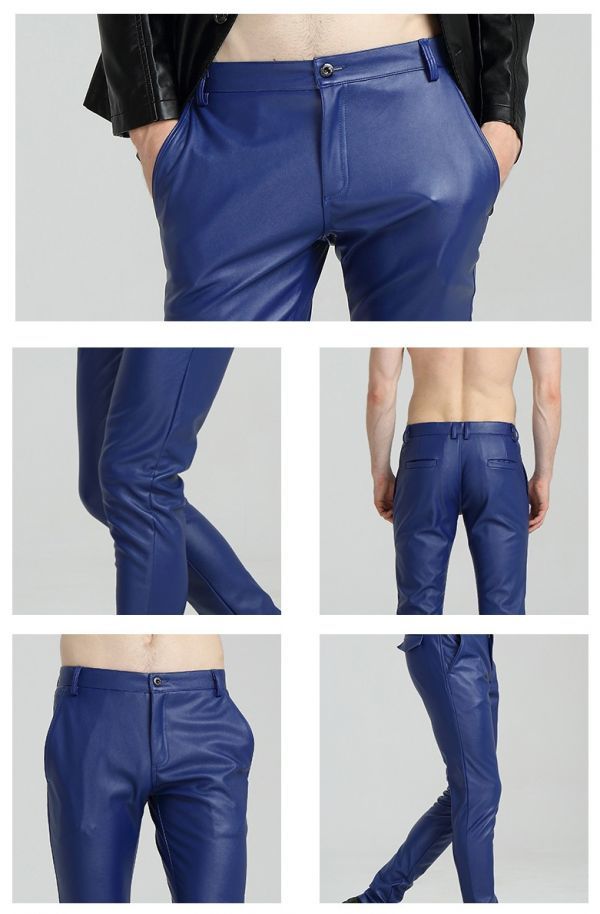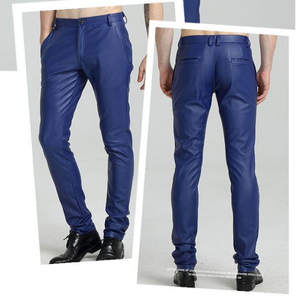 SALE! 革パンツ メンズ 皮パン スキニーお兄系 ダンス 歌手 フェイクレザーズボン ペンシル スリム タイト 青・31サイズ / ウエスト約80cm