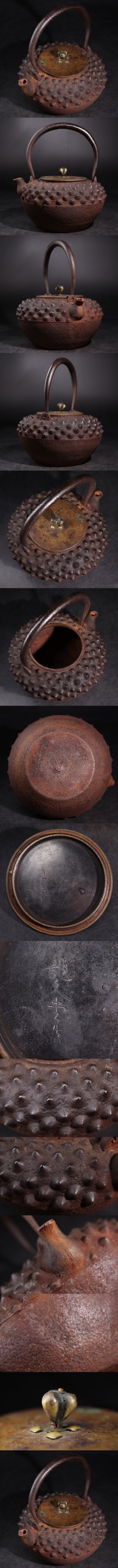 | 龍文堂造 蓋款 鉄瓶 鬼霰文 急須 容量約1300ml / 龍文堂 湯沸かし 茶器 煎茶道具 .G3891 |