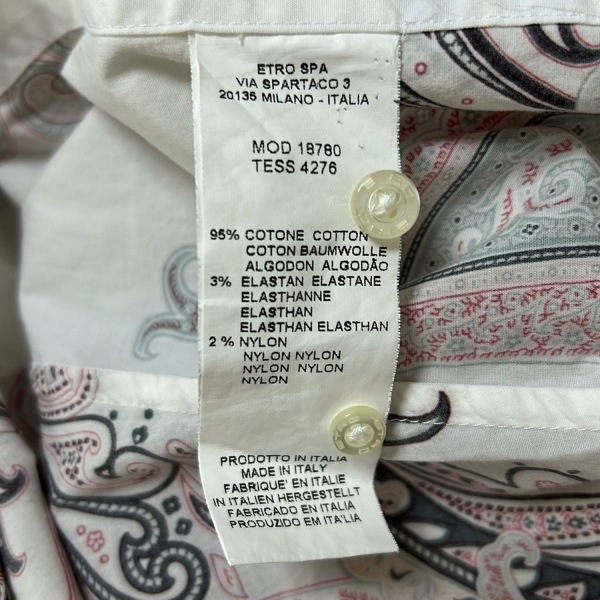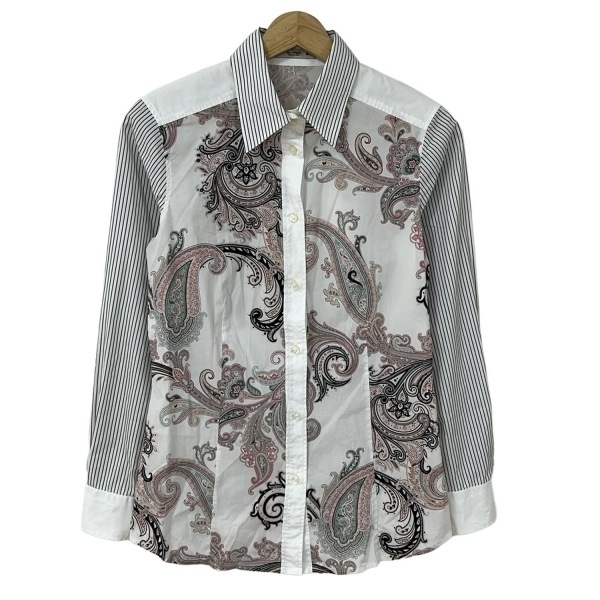 エトロ ETRO 長袖シャツブラウス サイズ42 M - 白×黒×マルチ レディース トップス