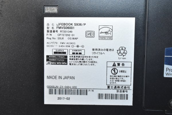 メーカー:富士通品名:LIFEBOOK S936/P 型名:FMVS06001 ※その他詳細は、掲載画像をご確認下さい。 付属品:ACアダプタ・電源ケーブル ■動作確認 通電:OK ネット接続:OK 動作確認はしておりません。 保証も致しかねます。画像にて判断ねがいます。 中古品のため、仕様につきましては異なっている点もある場合がございます。 一部商品は、一度修理されていると思われるものも含まれております。 動作について一切保証できません。 その他特記事項特になし ◆保証について◆