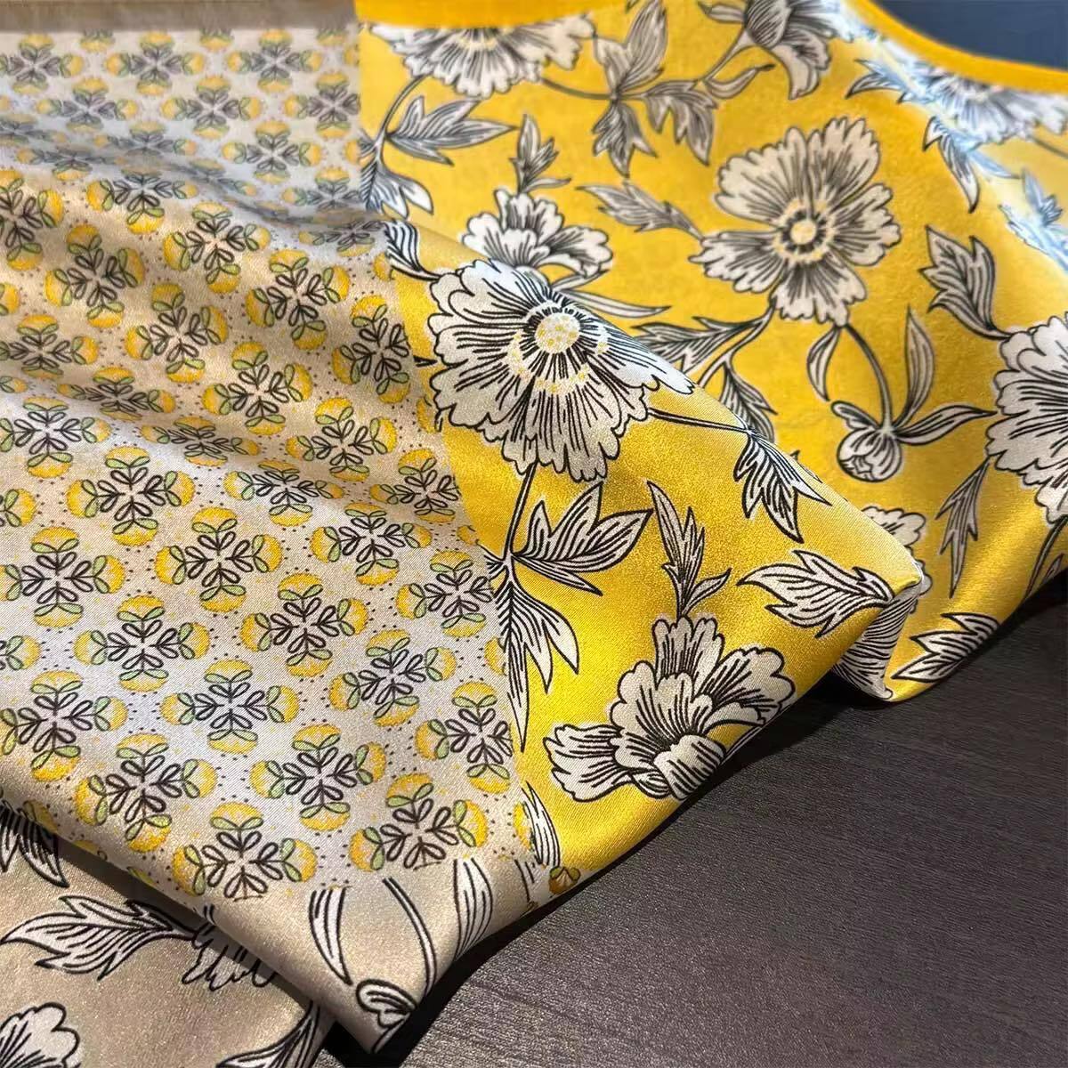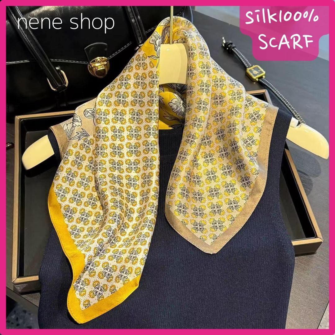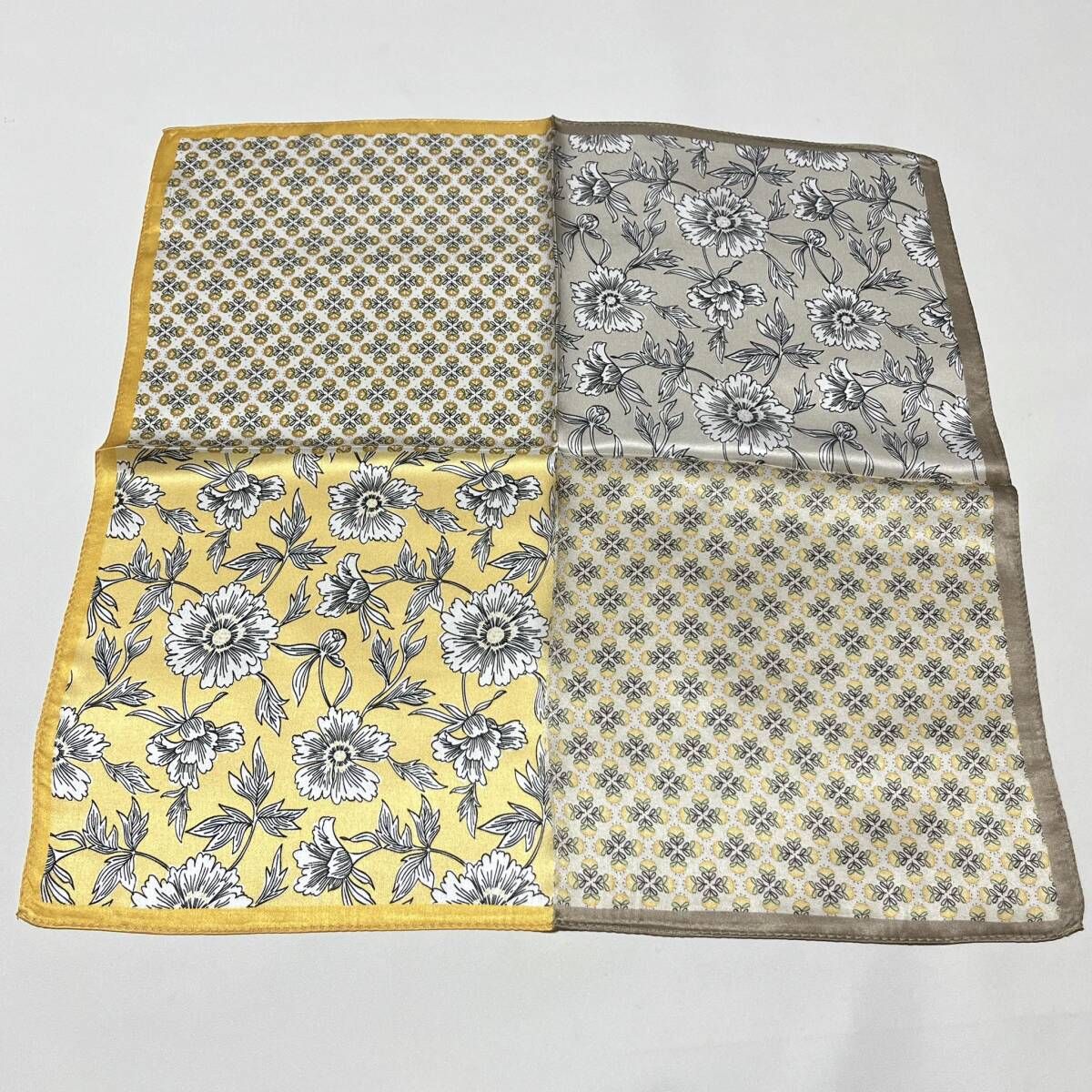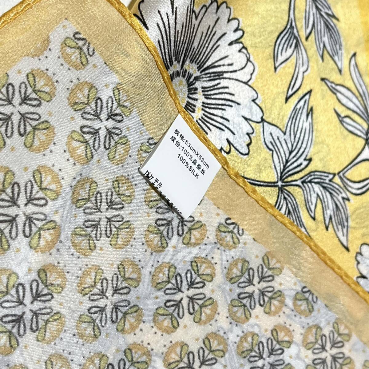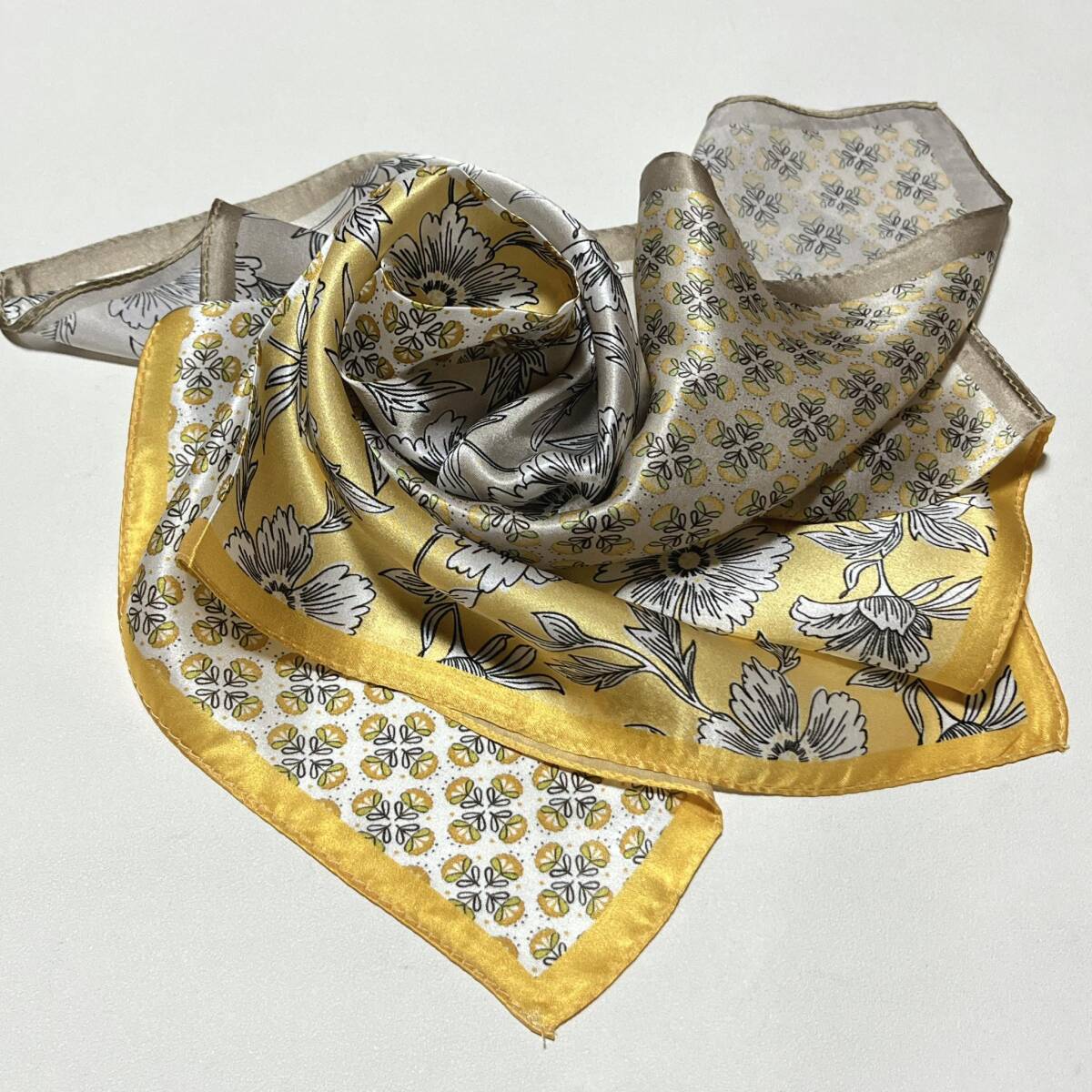 【新品】シルク スカーフ 絹 100% 花柄 黄色系 正方形 上品 大人可愛い