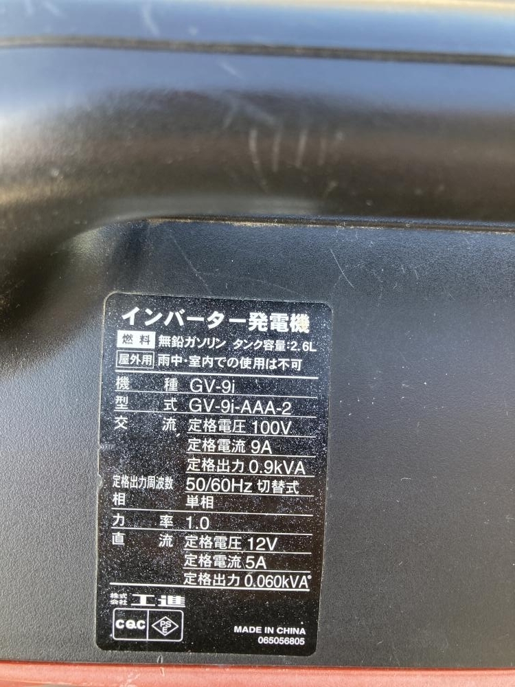 KOSHIN 工進 ■商品名 インバータ発電機 ■型番 GV-9i |