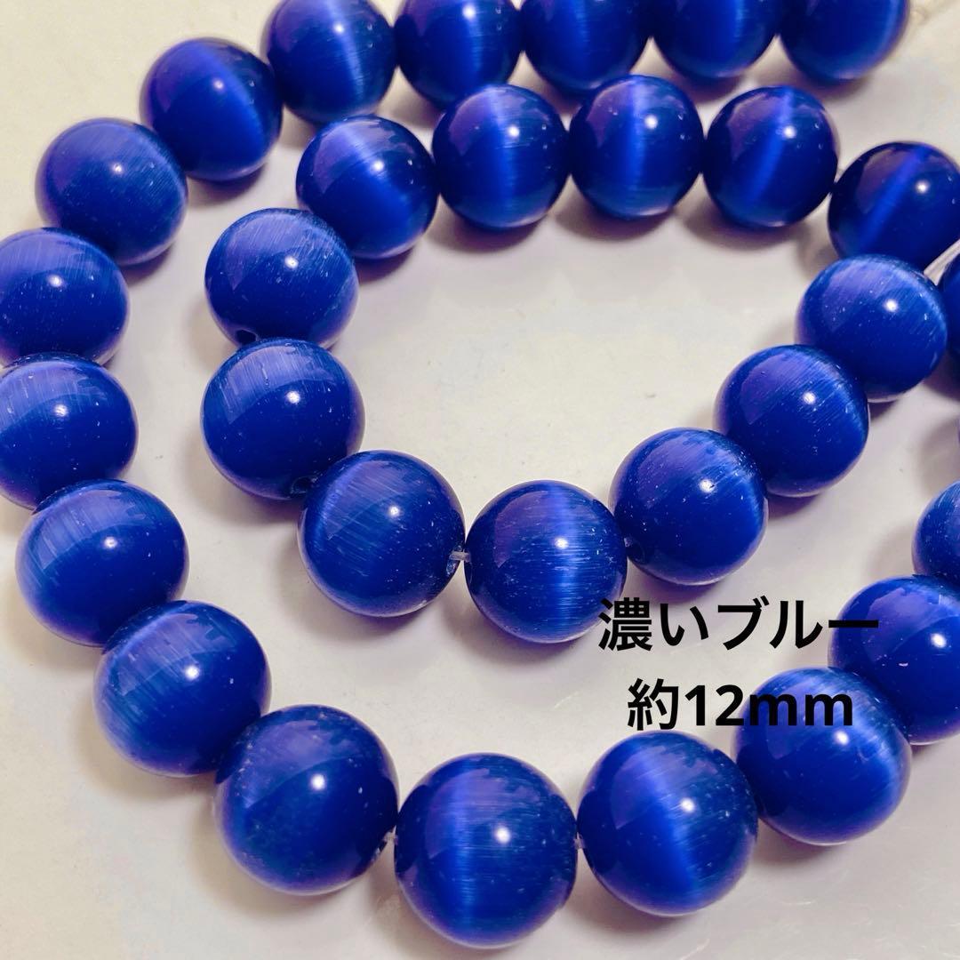 cr883/new!人工石◇キャッツアイ 濃いブルー 約12mm 1連