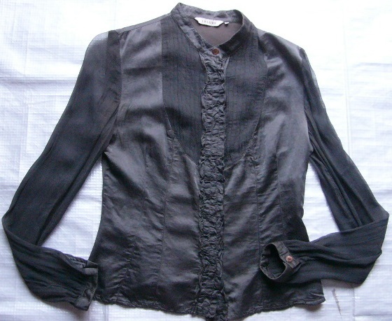 素材は、綿58%、シルク48%、シフォンはシルク100%、 サイズは40、9号くらいの方によろしいかと思います。