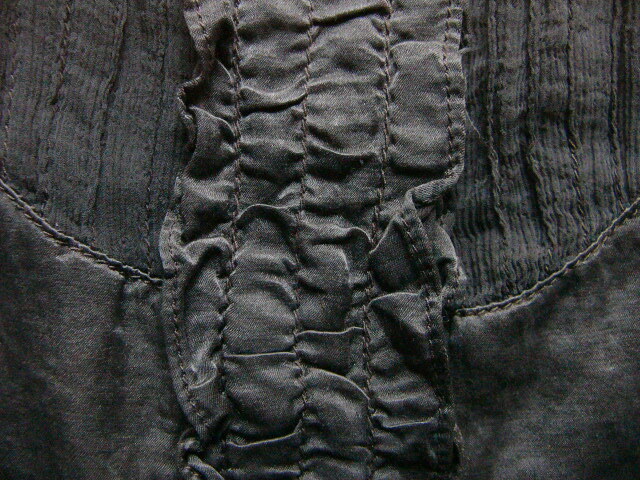 スタンドカラーで、フロントボタン7つ留め、袖口1つ留め、 一番上のボタン以外は、比翼仕立てです。