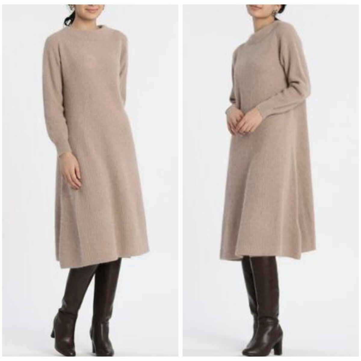 フォックスウールとアンゴラ混素材で防寒性あり、上品で優しい雰囲気のワンピースです♪