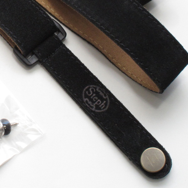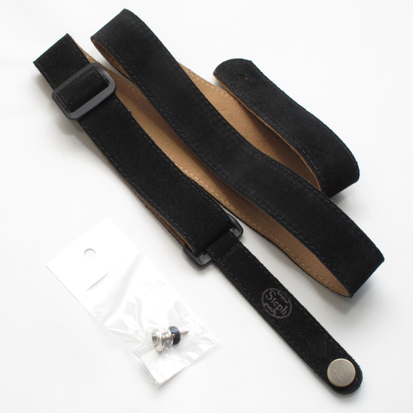 新品 Steph UKSS-29 ブラック1 ウクレレ用レザーストラップ スエード あとづけ用ストラップピン付