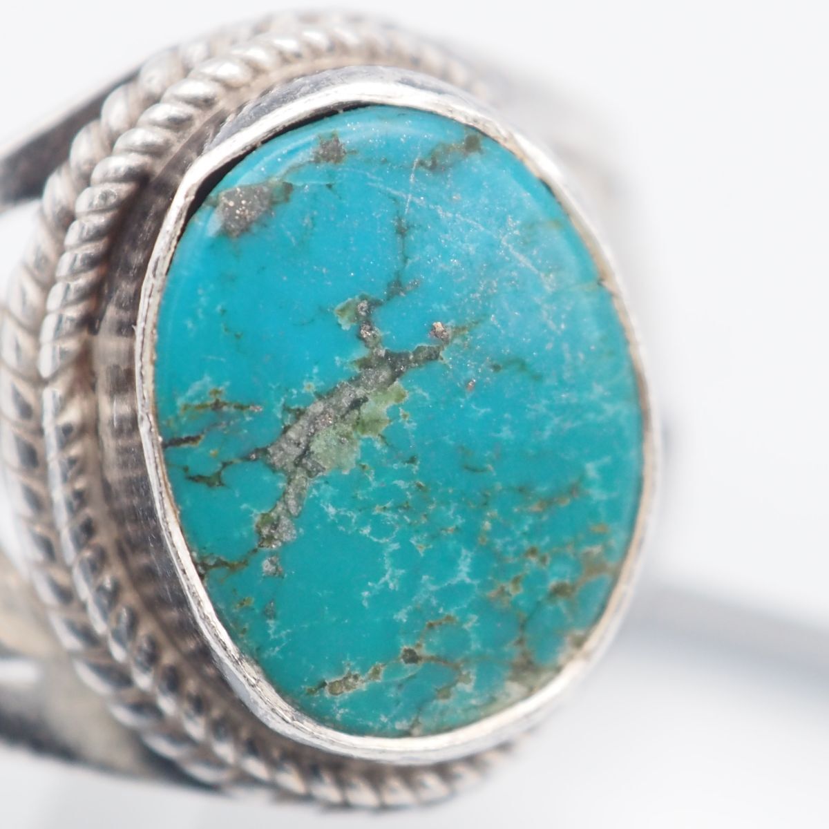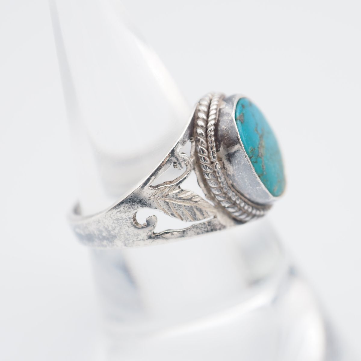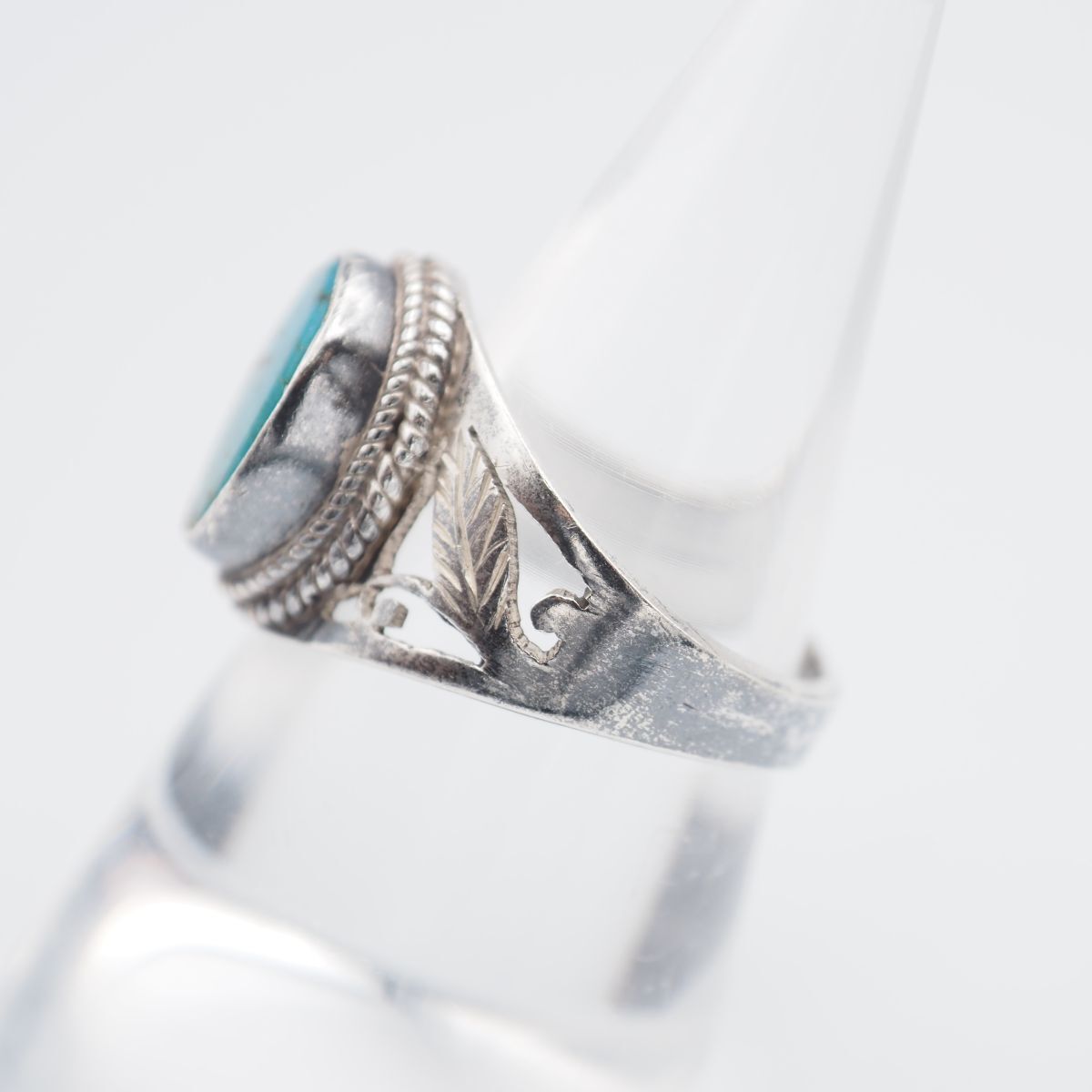G490 ターコイズ トルコ石 リング インレイ 透かし彫り リーフ デザイン シルバー 指輪 ヴィンテージ 12月誕生石 13号