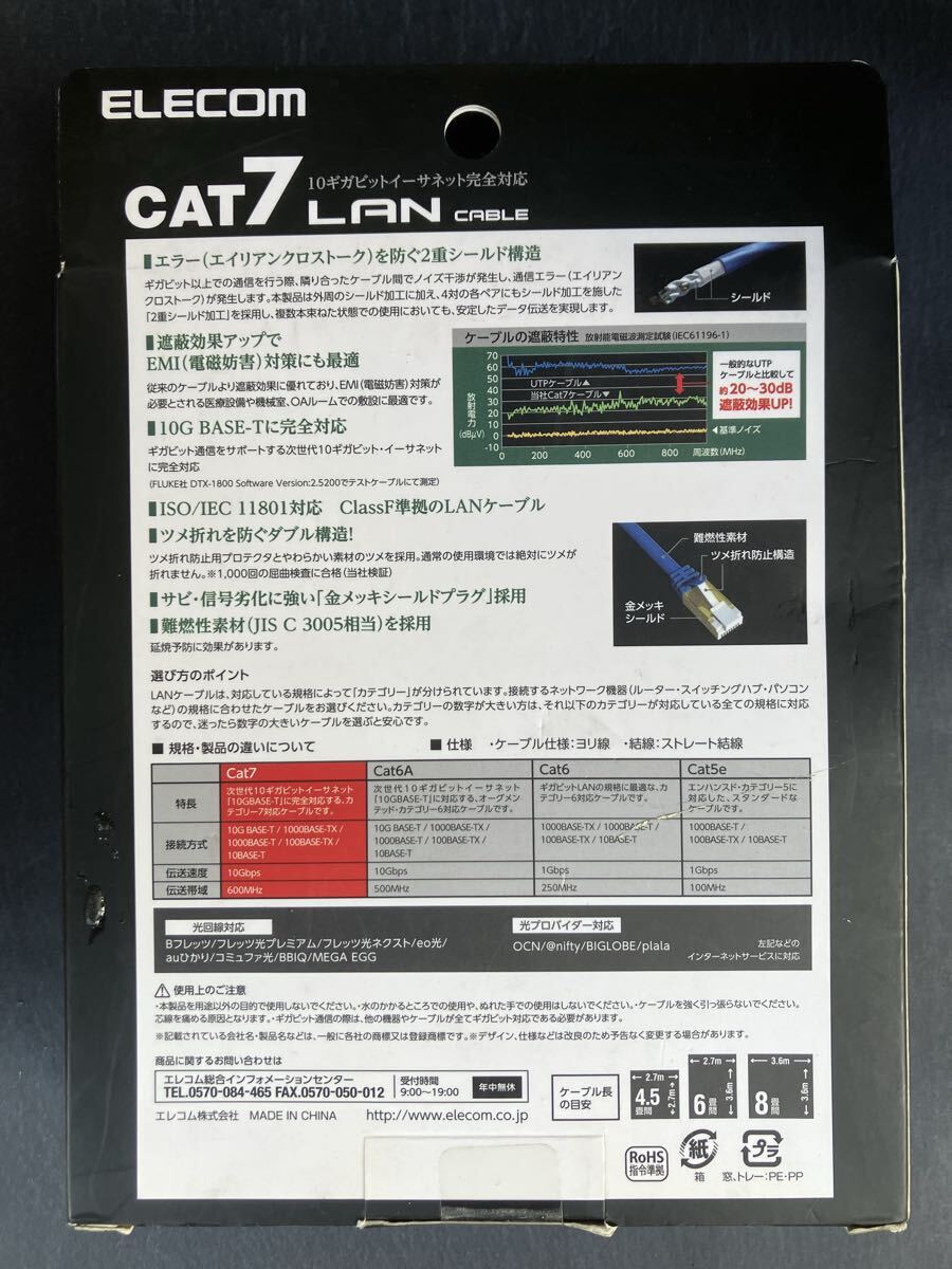 ●規格:CAT7準拠_カテゴリ7準拠(10GBASE-T)、CAT6A準拠_カテゴリ6A準拠(10GBASE-T)、CAT6E準拠_エンハンスドカテゴリ6準拠(10GBASE-T)、CAT6準拠_カテゴリ6準拠(1000BASE-TX)、CAT5E準拠_エンハンスドカテゴリ5準拠(1000BASE-T)、CAT5準拠_カテゴリ5準拠(100BASE-TX)、CAT3準拠_カテゴリ3準拠(10BASE-T)対応
