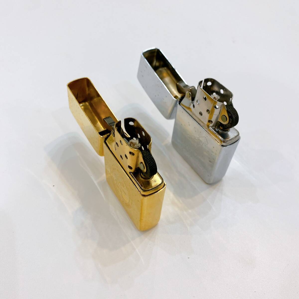 【中古】ZIPPO ジッポライター 2点セット(ゴールド・シルバー)