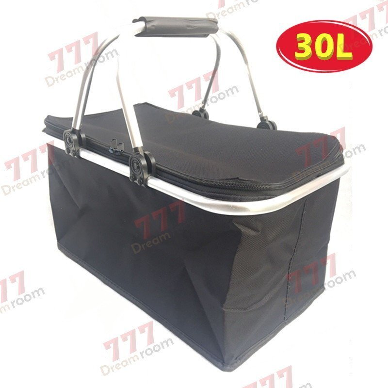 保冷・保温 機能付き 30L 折りたたみ式 エコバッグ【ブラック】大容量 バスケット 買い物かご 断熱バッグ屋外 ピクニック